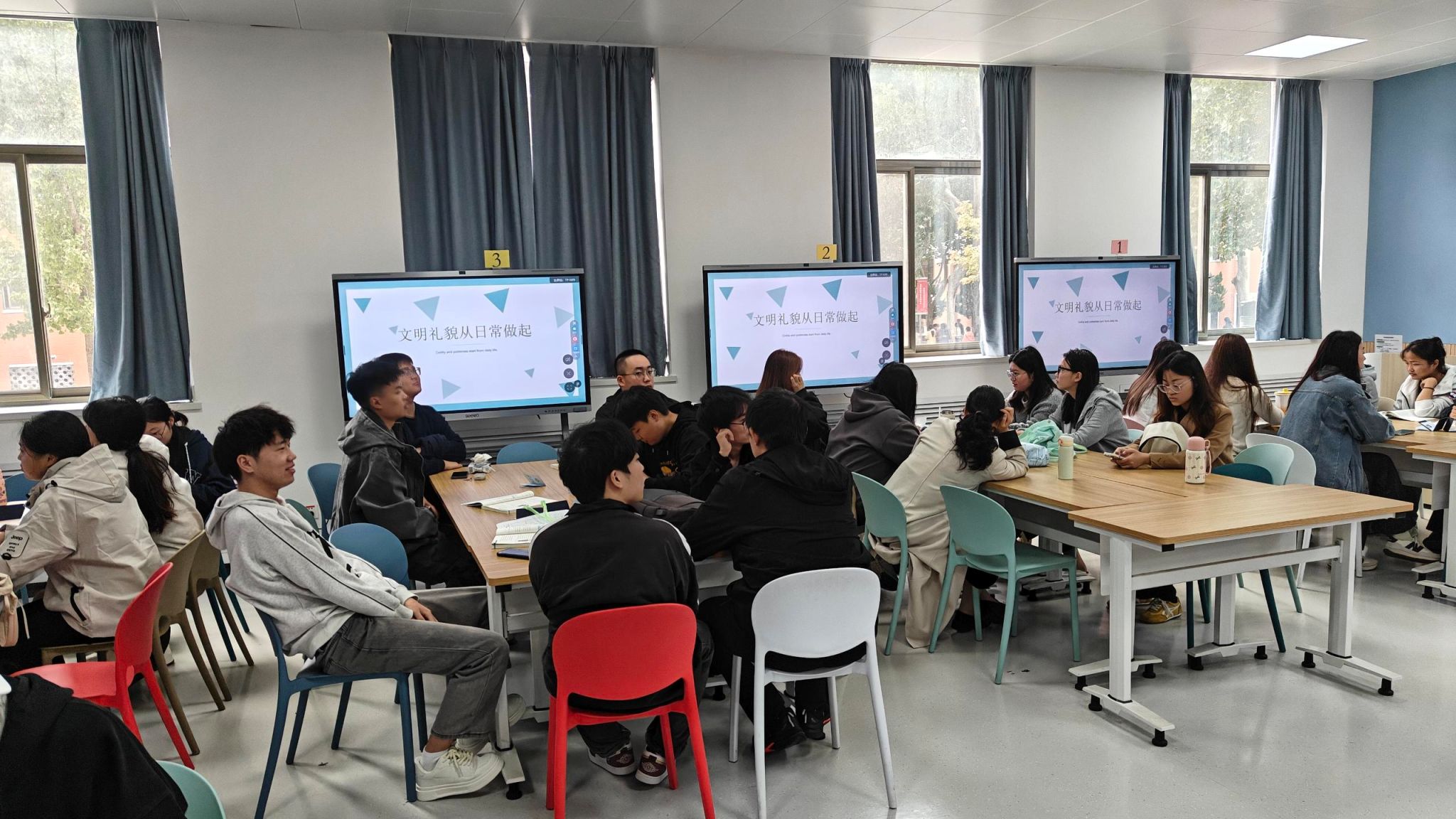 为积极响应学校“文明礼貌从日常做起”主题活动的号召,进一步弘扬校园文明新风,营造积极向上、尊师重教的良好氛围,近日,管理学院精心策划并全面启动了“文明礼貌月”系列活动。本次活动旨在引导学生将文明礼貌内化于心、外化于行,从课堂细节入手,全面提升学生的综合素养。课堂是传播知识、启迪思想的主阵地,也是展现学子精神风貌的重要窗口。管理学院着力打造“文明课堂”主题活动,由学院辅导员亲自组织并带领学生干部共同推进。