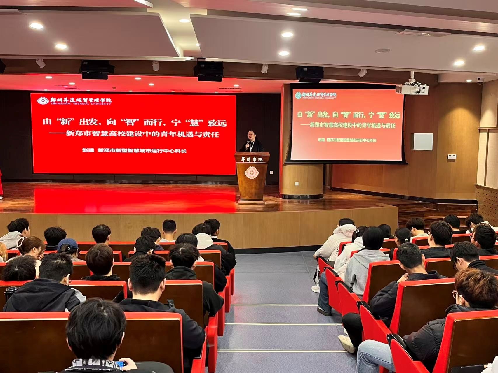 “青年一代具备创新思维活跃、对新技术接受度高的优势,这正是智慧高校建设所需要的。” 赵建在讲座中,通过列举新郑市部分高校与企业合作的智慧校园项目案例,生动展现了青年学生在技术研发、方案设计、落地推广等环节发挥的重要作用。同时,他也指出,机遇与责任相伴相生,青年在参与智慧高校建设时,需要树立正确的价值观,将个人发展与城市建设、国家需求紧密结合,真正让智慧技术服务于教育事业的高质量发展,服务于社会的进步。
