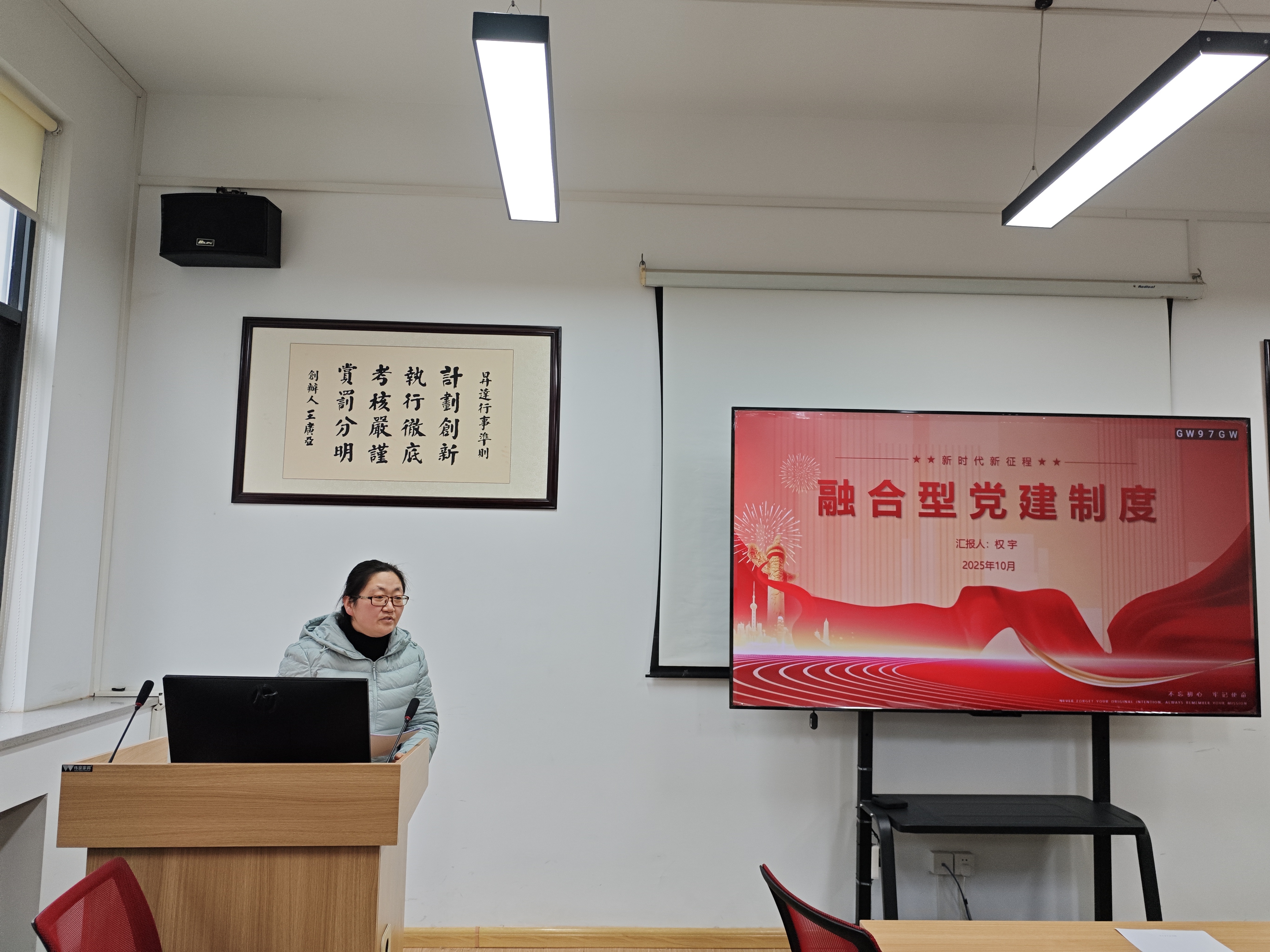 权宇同志围绕《融合型党建》第二篇“融合型党建制度”进行深入解读,结合学院党建工作实际,从制度设计的系统性、运行机制的协同性以及考核评价的导向性等方面,阐述了构建科学有效的融合型党建制度体系的关键路径,并就如何避免“重形式、轻实效”问题提出了思考。