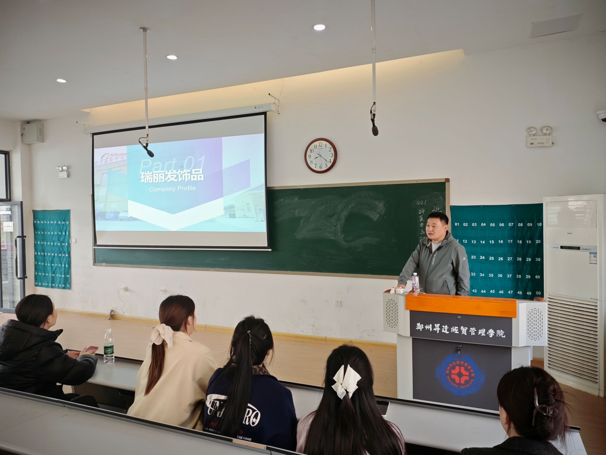 10月23日下午,外国语学院在教一楼208教室举办瑞丽发饰品有限公司专场招聘会。本次招聘主要面向国际贸易、商务英语等专业毕业生,提供外贸业务员等优质岗位,企业负责人王经理莅临宣讲。