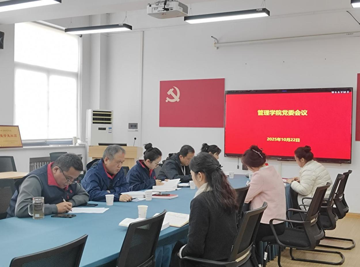 10月22日上午,管理学院在教学2号楼305会议室召开党委会议。管理学院党委书记职正路,党委副书记、院长朱影影,党委副书记兼团委书记许广庆和全体党委委员参加会议。会议由职正路主持。