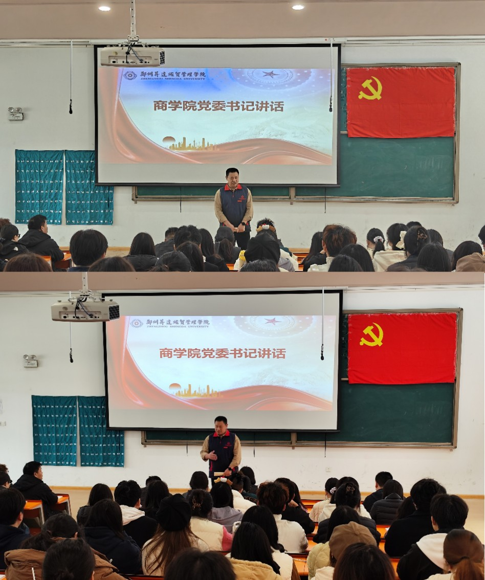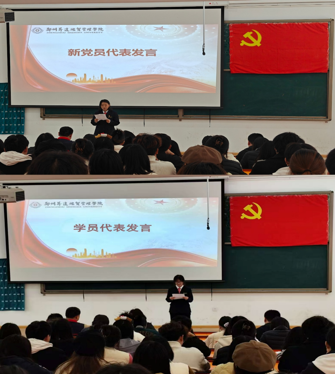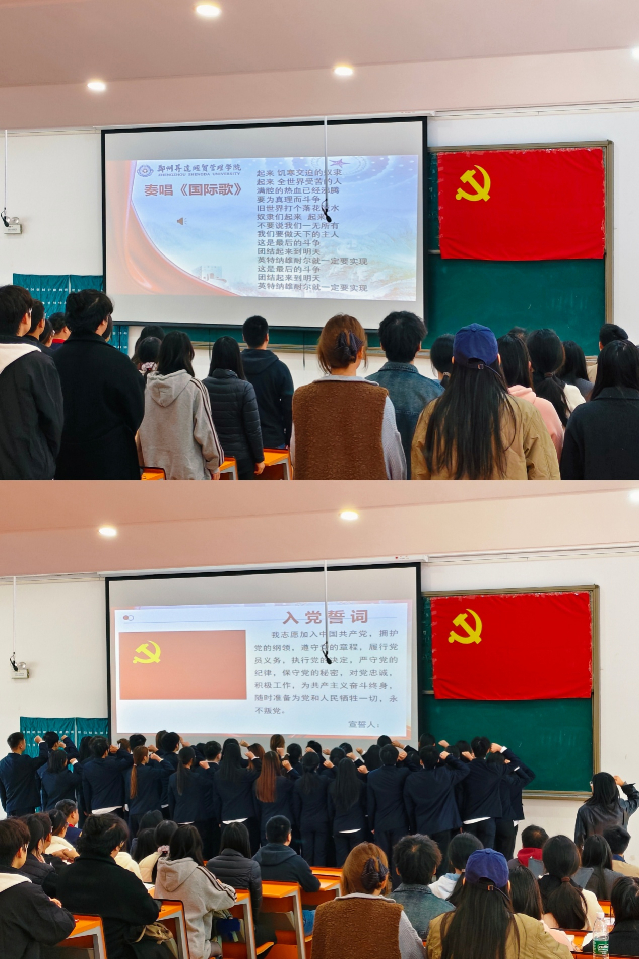 2025年10月28日,商学院新党员宣誓暨第22期业余党校开班仪式在教学楼2号楼116教室成功举行,商学院党委书记郭峰、商学院党委副书记郗艳花、学院各党支部书记出席了本次会议,大会由组织员杨利凯同志主持。