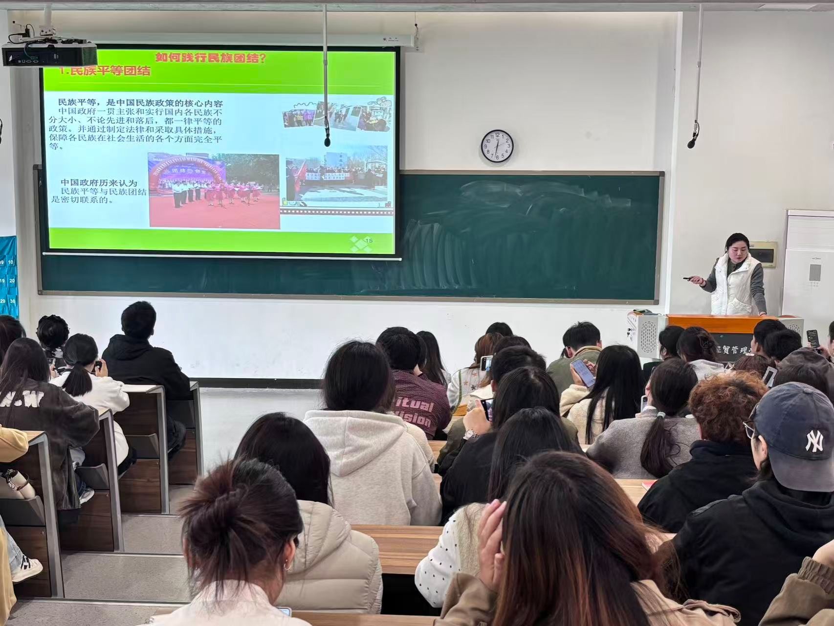 徐老师首先结合历史脉络与国情背景,细致梳理中华民族共同体形成的必然性,从古代多民族交融到近现代共同奋斗的历程,让同学们清晰认识到统一多民族国家发展的深厚根基,随后带领学员深入学习习近平总书记关于加强和改进民族工作的重要思想,让学生认识到维护国家统一、民族团结与社会稳定的重要意义,解析了民族工作方针,围绕民族区域自治制度的发展思想,介绍民族地区在脱贫攻坚等领域的实践成就,明确了维护民族团结是大家的责任与义务。