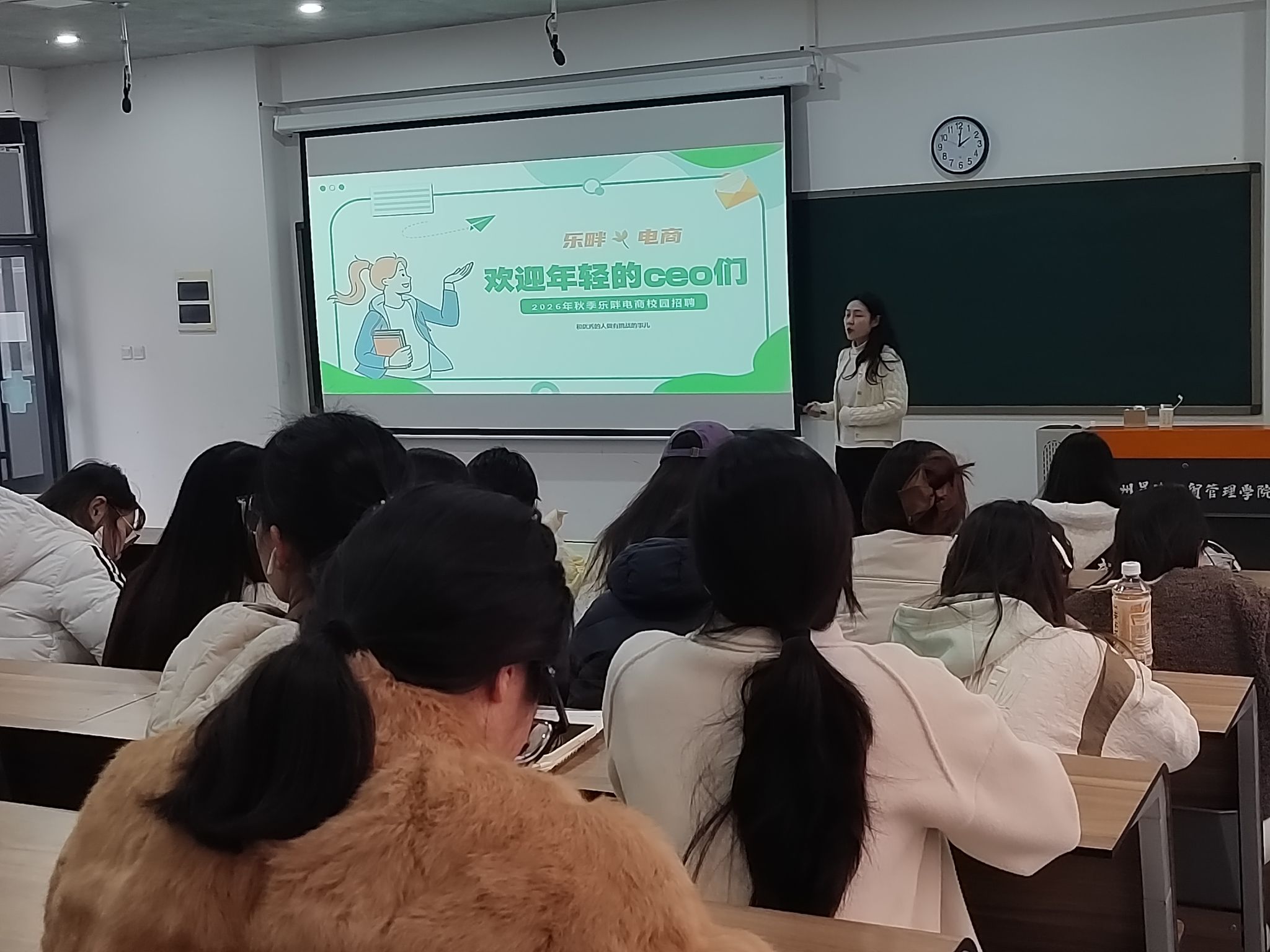 为帮助26级毕业生提供更多优质就业机会,精准对接企业需求,10月29日下午,金融贸易学院在3号楼110教室举办乐畔电子商务有限公司专场宣讲会,乐畔公司的人事经理刘莉愿老师主持宣讲,应届毕业生积极参加,现场气氛热烈。