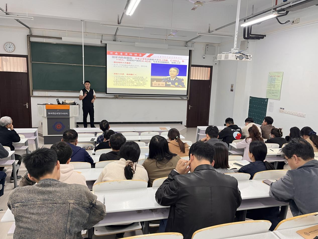 为深入贯彻落实习近平总书记关于安全生产的重要指示精神,全面提升学院教师的消防安全意识和自防自救能力,营造安全、稳定、和谐的办公环境,10月31日下午,机电学院特邀河南省消防协会义务消防科普宣传服务队张雨辰教员在万林大楼609教室开展消防安全知识专题培训。