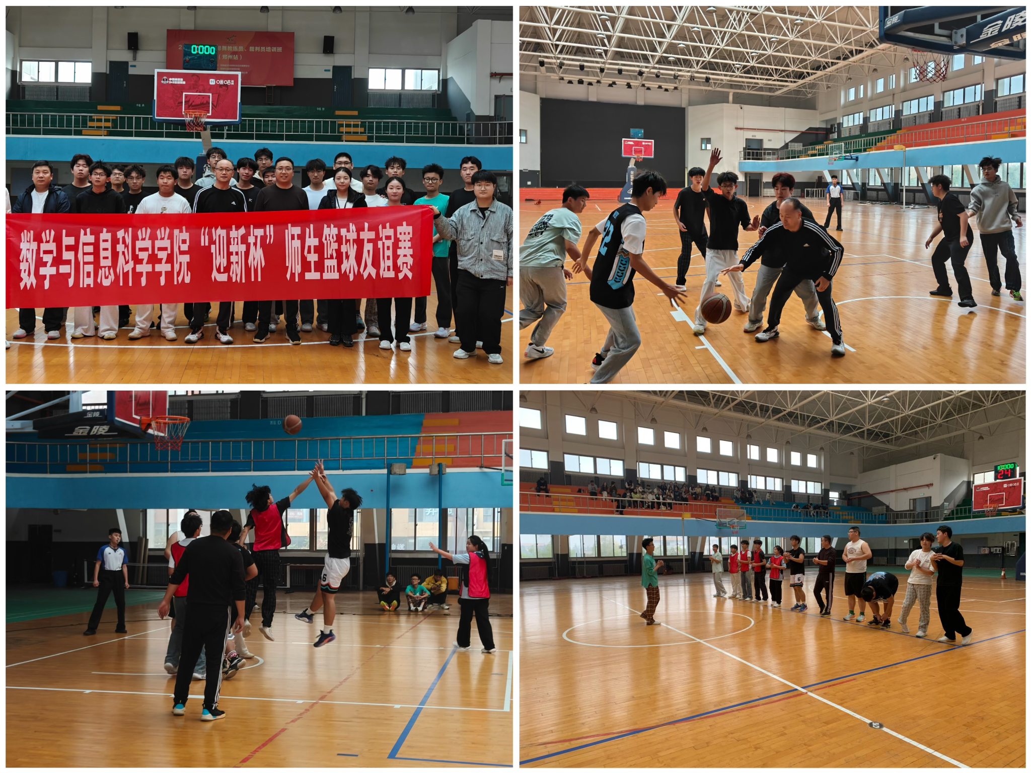 聚焦新生融合,传递青春活力。为助力新生迅速适应校园生活,丰富师生的体育文化生活,数学与信息科学学院于10月30日在体育馆三楼篮球场举办了“师生篮球杯”活动。我院党委书记朱永恒、党委副书记李明明、季文光老师、王森源老师、宋兰兰老师与学生代表共同参与其中,以篮球为桥梁,搭建起师生互动的全新场景。