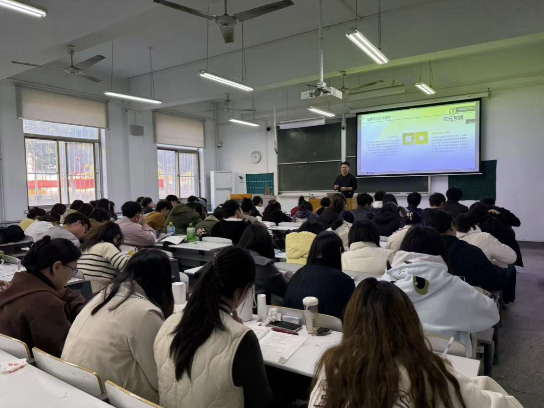 杭州星源启示科技有限公司总经理邓永凯为同学们做了一场主题为“AI创业与成长”的讲座。邓总结合自身的创业经历讲述了基于AIOT技术工业仓储系统智能体研发及产业化的发展,用切蛋糕方式寻找垂直领域。要审视行业中哪些环节是重复性、数据驱动、可优化的,那里就是AI的切入点。激励学生积极、正确使用AI产品并培养“AI思维”。