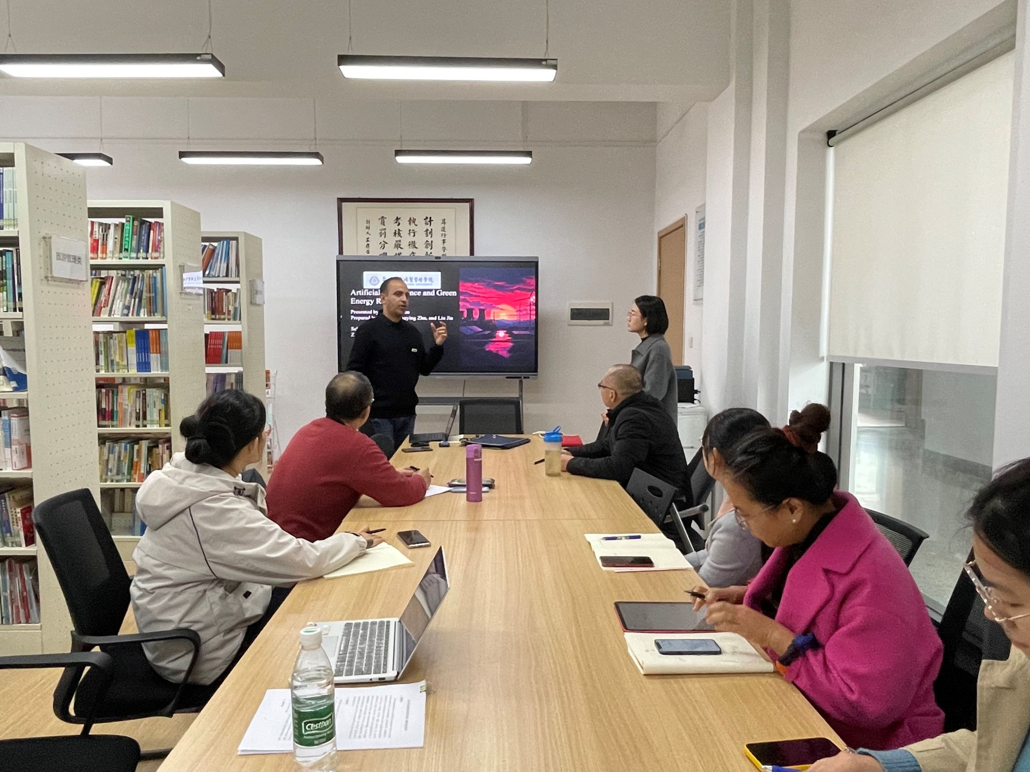 10月31日上午10:00,管理学院外籍教师Sajjad Alam博士在2号楼205会议室主讲“人工智能与绿色能源——中国工业领域新兴趋势与未来方向”专题讲座,学院教师代表齐聚现场,深入探讨人工智能与绿色能源融合发展议题。