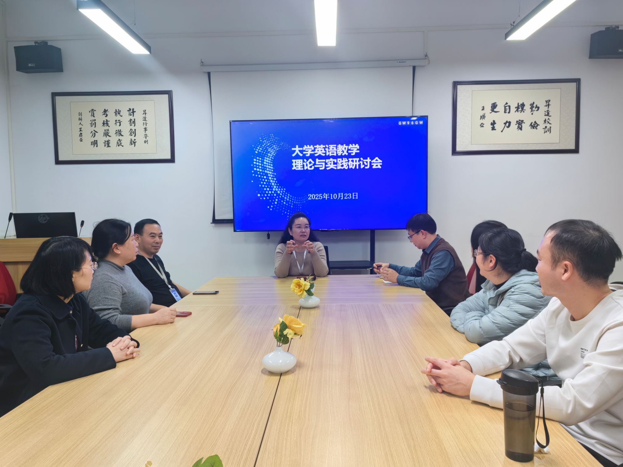 2025 年 10 月 23 日下午,大学英语教学理论与实践研究会在 1-206 会议室顺利召开。本次会议聚焦英语教学改革与科研能力提升,旨在搭建教学经验交流与科研项目申报的优质平台,来自外国语学院的骨干教师参与了本次研讨。会议由副所长吴娟娟教授主持,围绕科研项目申报、教学与科研融合等核心话题展开专题分享。