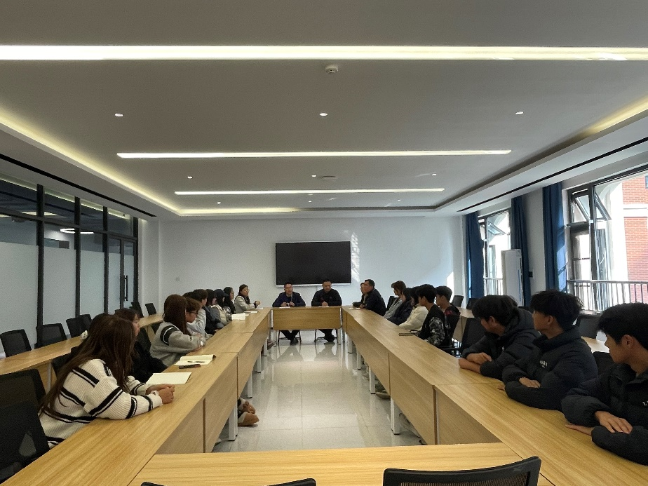 会上,白朋飞院长围绕专业建设与学业规划,鼓励同学们立足学科特色,夯实专业基础,积极参与实践创新,在探索中明确发展方向。郭峰书记从思想引领角度出发,寄语同学们坚定理想信念,珍惜校园时光,以奋斗姿态书写青春篇章。郗艳花副书记聚焦学生生活与身心健康,叮嘱大家学会自我调节,主动沟通交流,学院将全力为同学们的成长保驾护航。马巧丽老师就课程安排、教学服务等事宜与学生代表现场沟通。