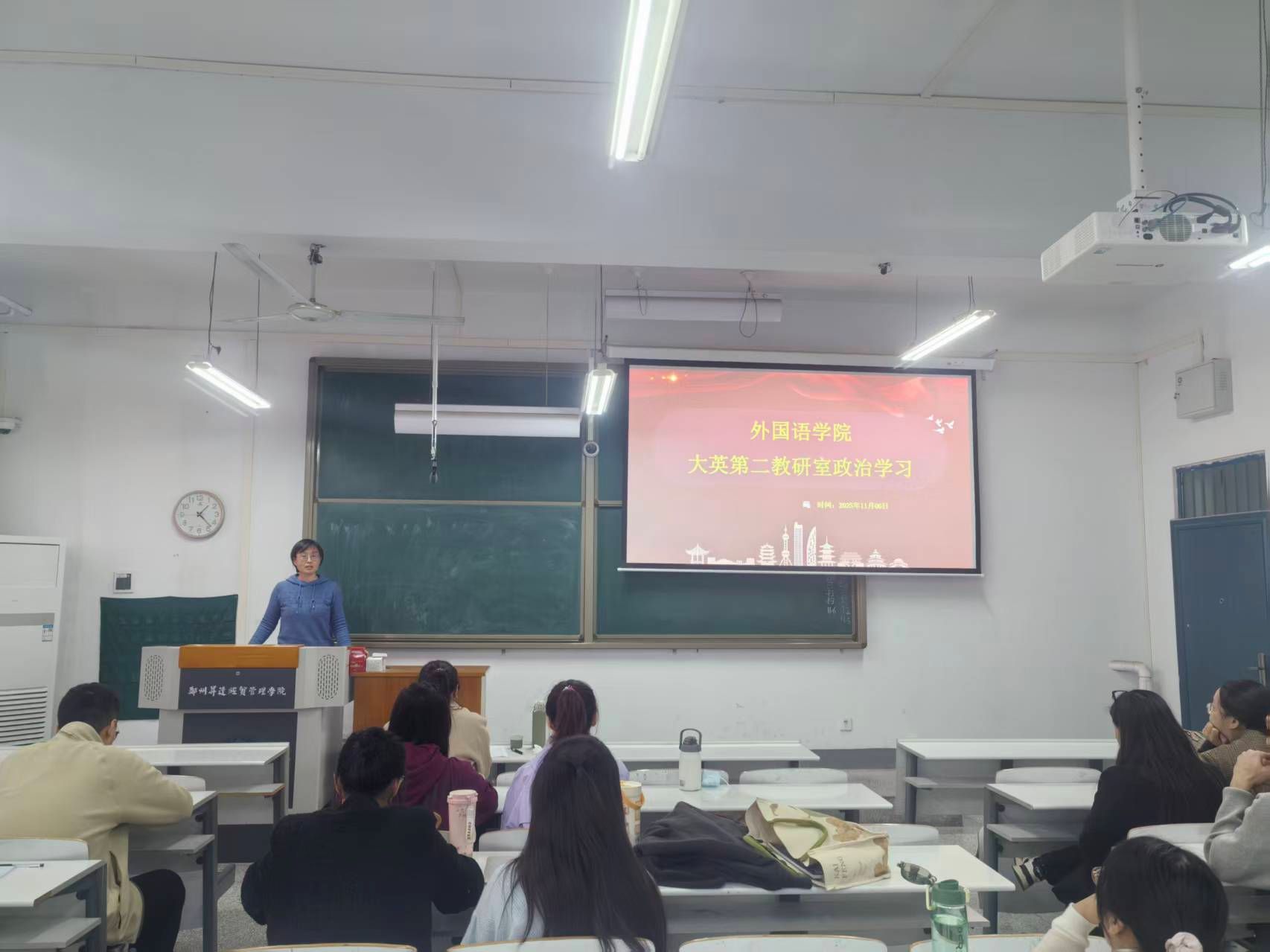 2025年11月6日,外国语学院党委组织所属党支部集中开展专题政治学习活动,共同学习中国共产党第二十届中央委员会第四次全体会议公报精神,并就推动党的二十届四中全会精神进课堂教学比赛的选拔工作作出具体安排。