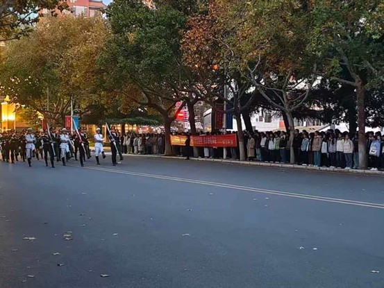 清晨六点十分,清脆的广播声准时响起。远处,激昂的旋律迎风回荡,国旗班的同学们迈着铿锵有力、英姿飒爽的步伐缓缓走来。这一瞬间,不仅定格了会计学院全体师生对国旗的崇敬与赤诚,更让每个人的心中都涌动着温暖而坚定的力量,使命感与责任感在心底悄然升腾,久久激荡。