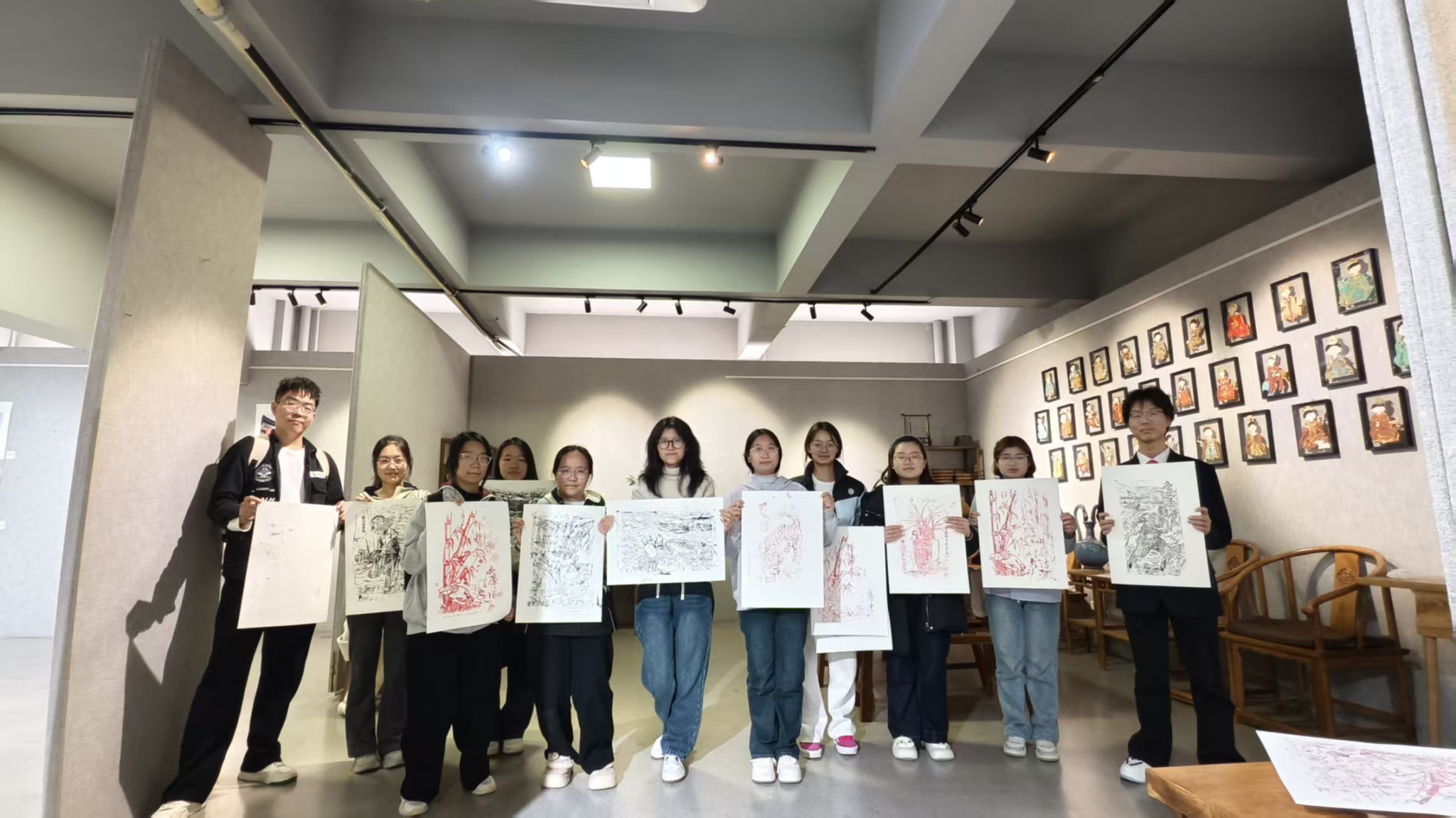 商学院学生代表岳芝先表示:“每一幅作品都饱含着对民族文化的热爱,从笔墨光影中能清晰感受到各民族像石榴籽一样紧紧相拥的凝聚力。” 参观尾声,师生们积极参与展厅同步开展的非遗拓印体验活动。在专业老师的悉心指导下,大家亲手铺纸、蘸墨、捶拓,一步步完成属于自己的民族风格作品。指尖触感与传统工艺的碰撞,让师生们在亲身实践中更直观地感受传统文化的魅力,深刻体会到传统文化与时代主题的有机结合。