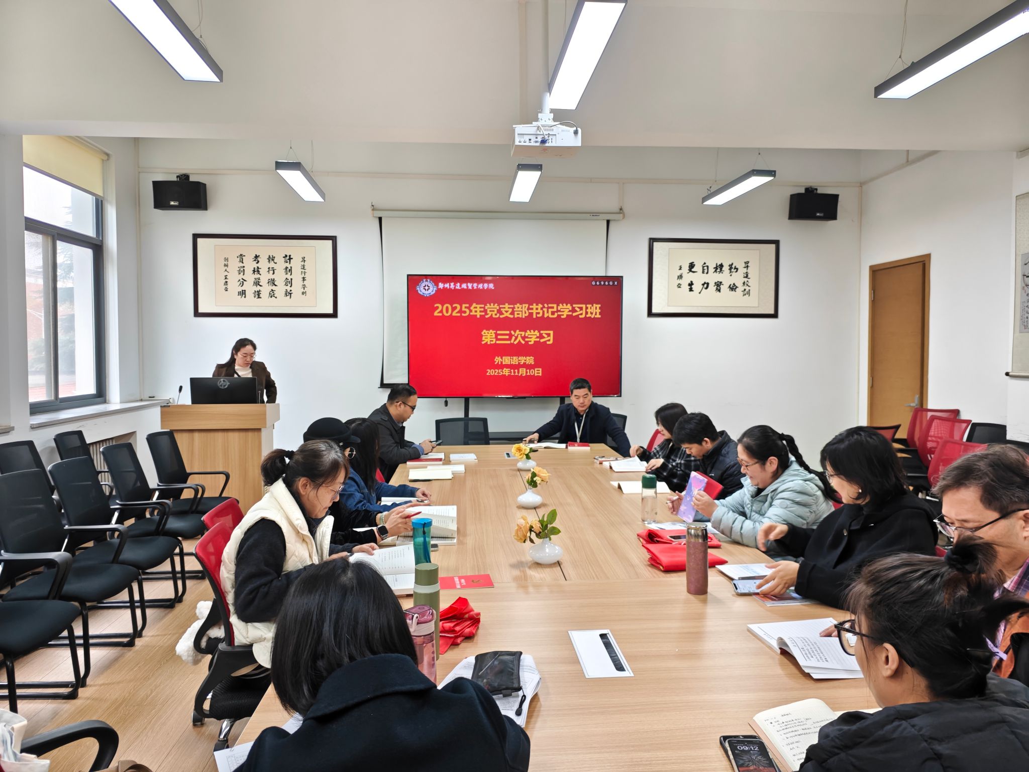 2025年11月10日上午,外国语学院在院206会议室召开2025年党支部书记学习班第三次集中学习会。会议由院党委书记石皓召同志主持,全体党委委员及各党支部书记参加,旨在深入学习贯彻新时代党的建设总要求,持续推进“融合型党建”理念落地见效。
