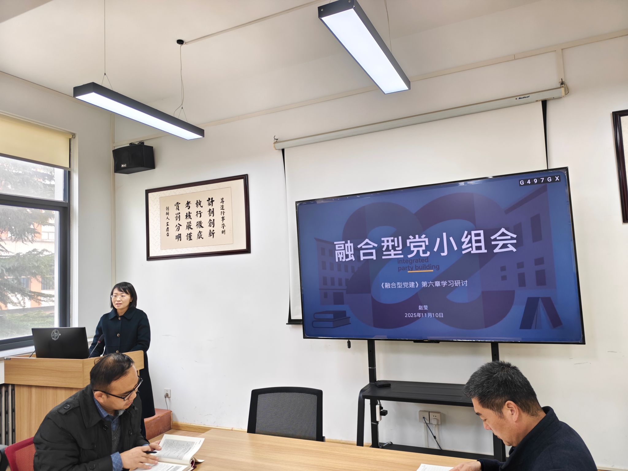 随后,大学英语第三教研室党支部书记赵莹同志领学《融合型党建》第六篇“融合型党小组会”。她重点阐述了党小组在基层治理中的“神经末梢”作用,提出通过构建“业务+党建”双融双促的党小组活动模式,提升组织活力和党员参与度。赵老师还展示了所在党支部开展课程思政建设、青年教师帮扶等典型案例,引发与会人员共鸣。