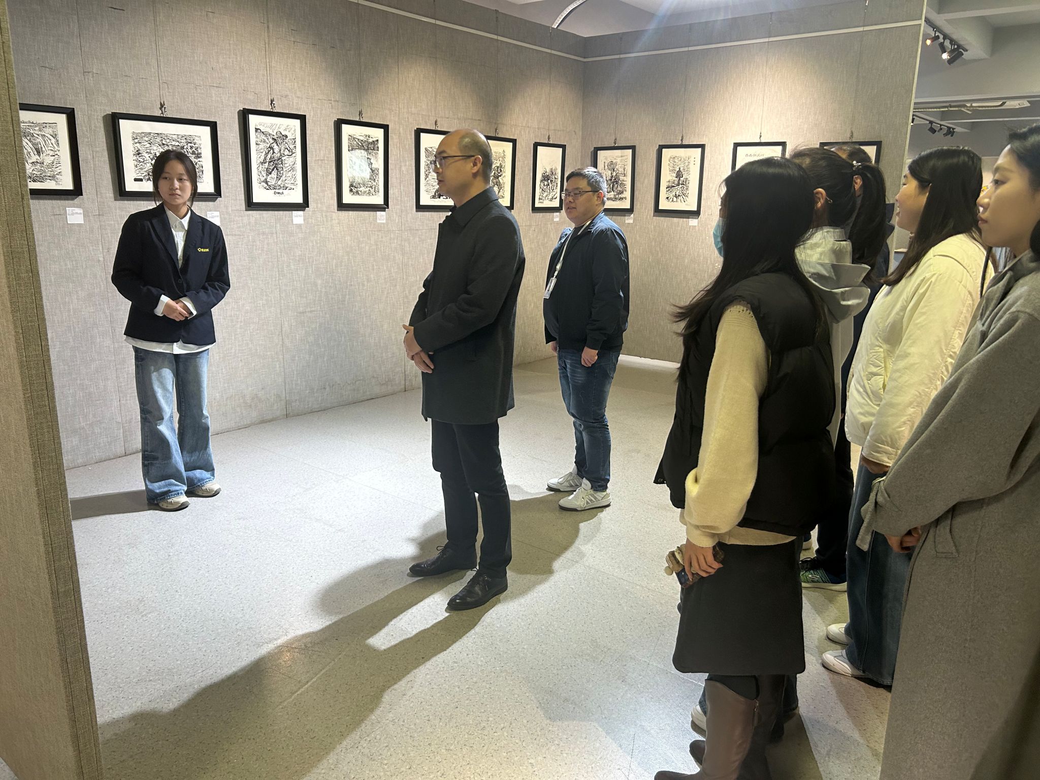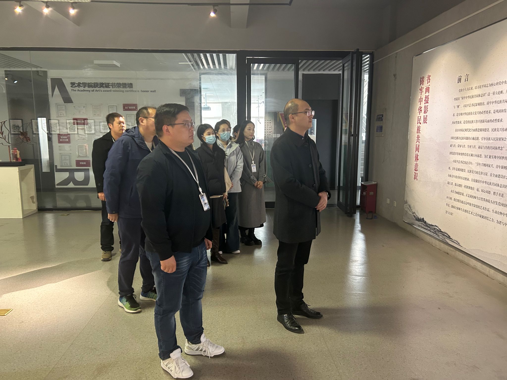 11月13日上午,马克思主义学院党委书记韦杨建带领教师代表参观学校“铸牢中华民族共同体意识”书画摄影展。大家以艺术为媒,在笔墨光影间感悟家国情怀,在文化浸润中凝聚奋进力量,开启了一场兼具思想性与艺术性的思政实践之旅。