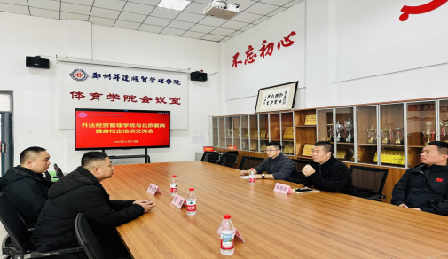 2025年11月13日上午,我校体育学院与北京爱尚健身在体育学院体育馆一楼会议室举行校企合作座谈交流会。北京爱尚健身总经理冯磊、李治杰、韩冰,我校体育学院党委书记韩炎涛,社体教研室主任李英豪双方代表出席本次会议。