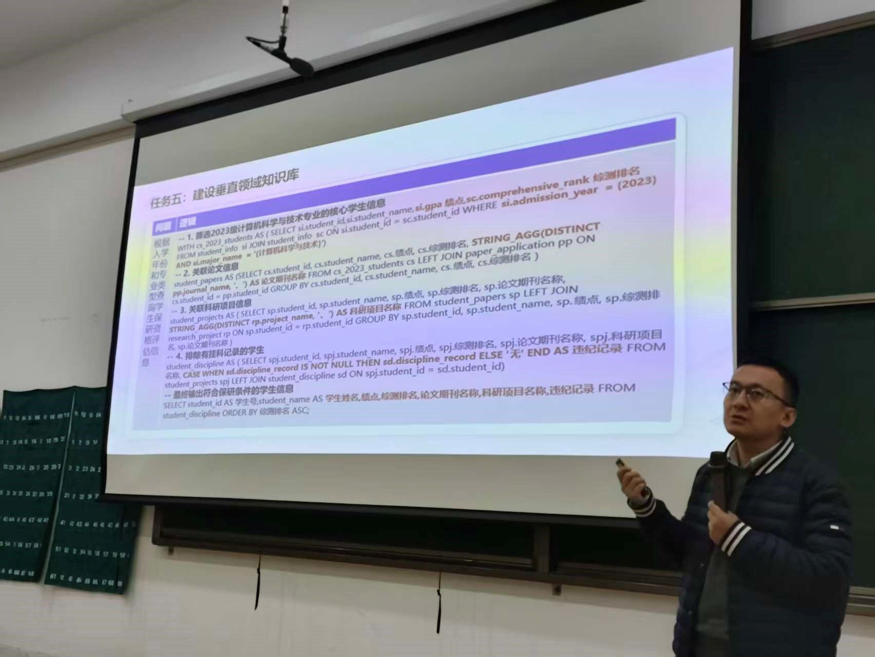王永博士首先梳理了传统高校管理系统中的痛点问题,如跨系统数据查询需切换多平台、辅导员手动汇总保研资格信息易出错且重复劳动多、业务办理入口分散、学生申请奖学金需经4-5级导航等,随后提出突破性方案:利用校园智能助手借Text2SQL技术实现自然语言查数,师生无需专业技能即可获取个性化数据;智能导航直达功能让“申请秋季奖学金”等操作一步跳转,大幅简化流程。该方案的技术闭环尤为亮眼:从网页采集、实体关系提取,到AI自动匹配18项规则清洗数据、补全元数据、构建垂直领域知识库,系统能精准理解“有效选课”、“保研资格评估”等专业术语,同时结合同义实体匹配提升语义理解准确性。再运用Chat Agent(靠多轮对话记忆、歧义澄清解决自然语言模糊性)与SQL Agent(凭实体抽取、智能SQL生成攻克数据库查询难题)两大智能体,成为核心支撑,真正实现“数据多跑路,师生少跑腿”。