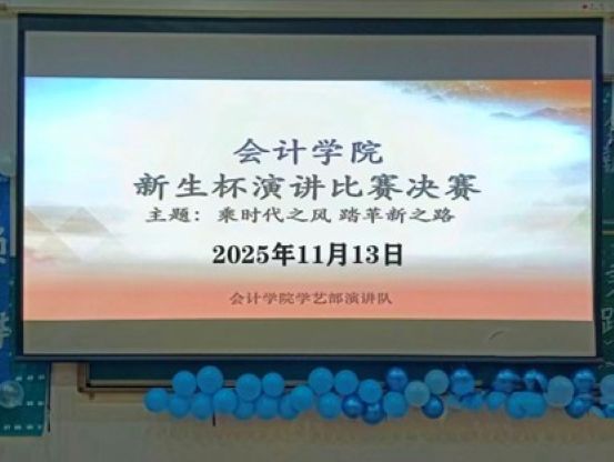为丰富校园文化生活,锻炼学生语言表达与逻辑思维能力,引导青年学子把握时代脉搏、勇担时代使命。11月13日,由会计学院团委主办、会计学院学艺部承办的“新生杯”演讲比赛决赛在教学楼4号楼118教室隆重举行。莅临本次比赛的有:会计学院党委副书记兼团委书记陈刚老师、会计学院2025级辅导员兼就业工作专员刘爽老师、会计学院第31届学生会主席汤振全、第31届学生会副主席王文锦、第31届团委书记助理郎子曦、岁一转。会计学院2025级各班学生代表220余人到场观看了比赛。