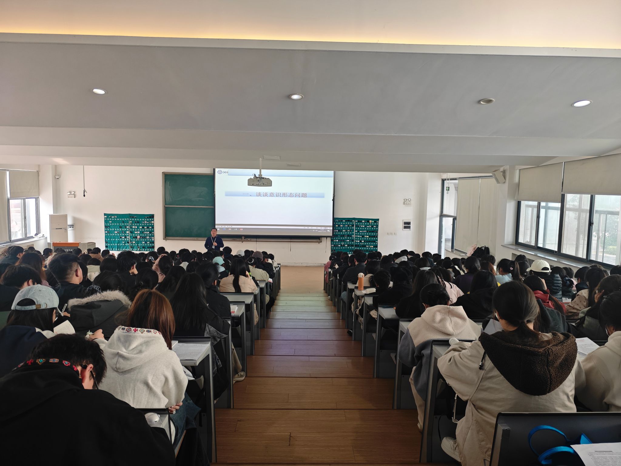 2025年11月10日,外国语学院党委书记石皓召在教学一号楼118教室,为第二十二期业余党校学员讲授题为《谈谈入党必须解决的几个认识问题》的专题党课。