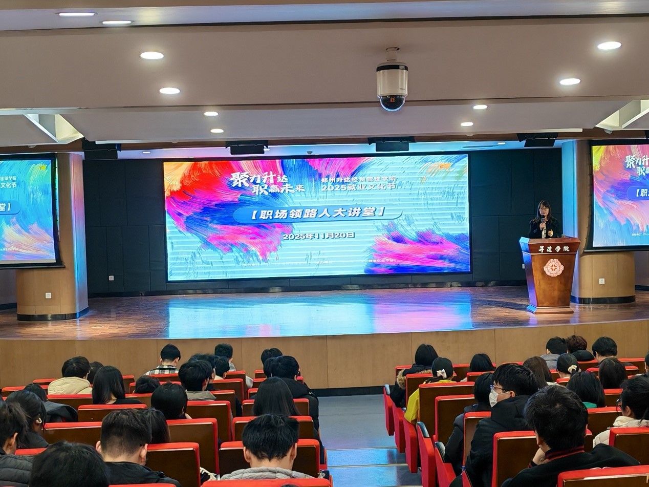 为帮助信息工程学院学子明确职业发展方向,提前做好职场准备,破解从校园到职场的过渡难题,在我校就业处的指导与支持下,学院于2025年11月20日,在综合实训大楼A座报告厅隆重举办职业规划专题讲座。本次讲座特邀郑州时空隧道信息技术有限公司人力资源总监陈楠女士担任主讲人,围绕“从校园到职场的成长密码”这一核心主题,为在场师生带来了一场兼具实用性与前瞻性的精彩分享。