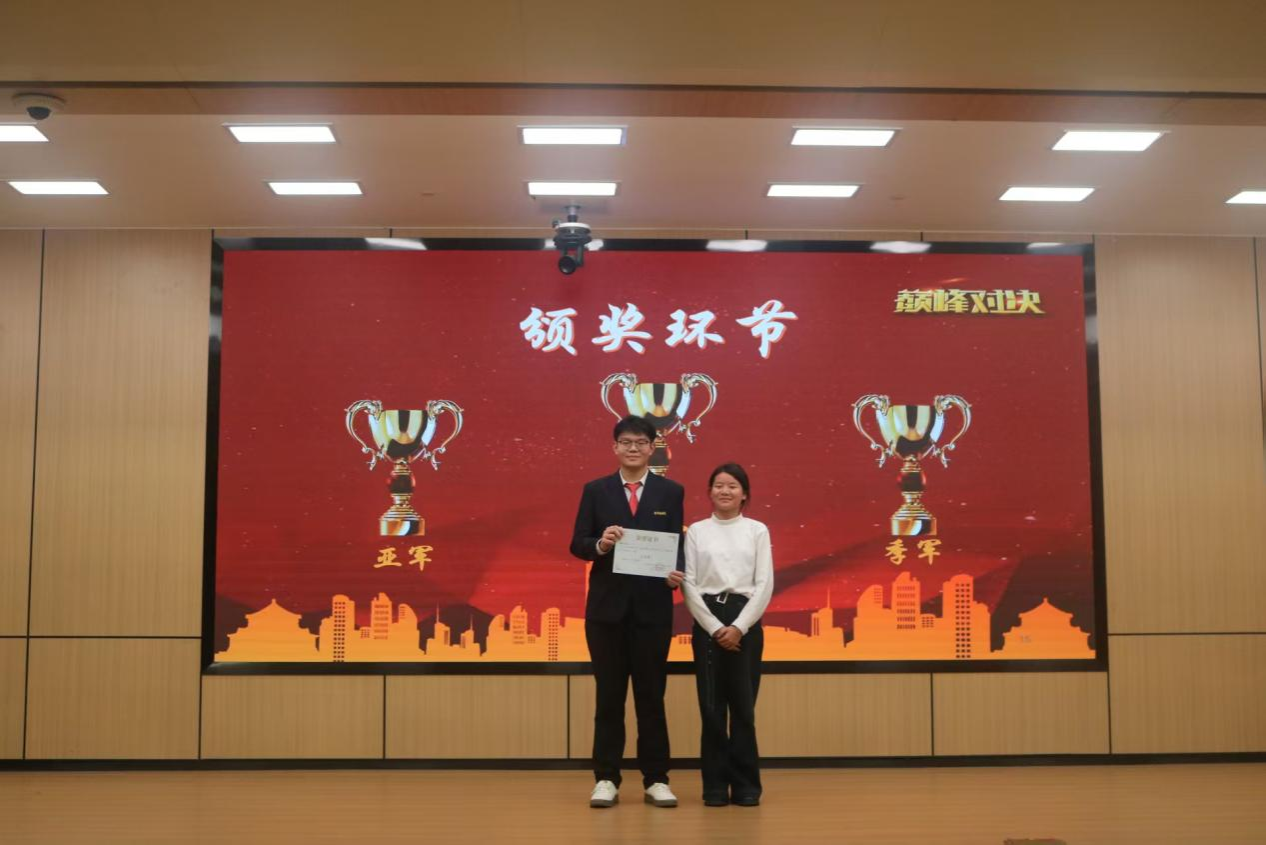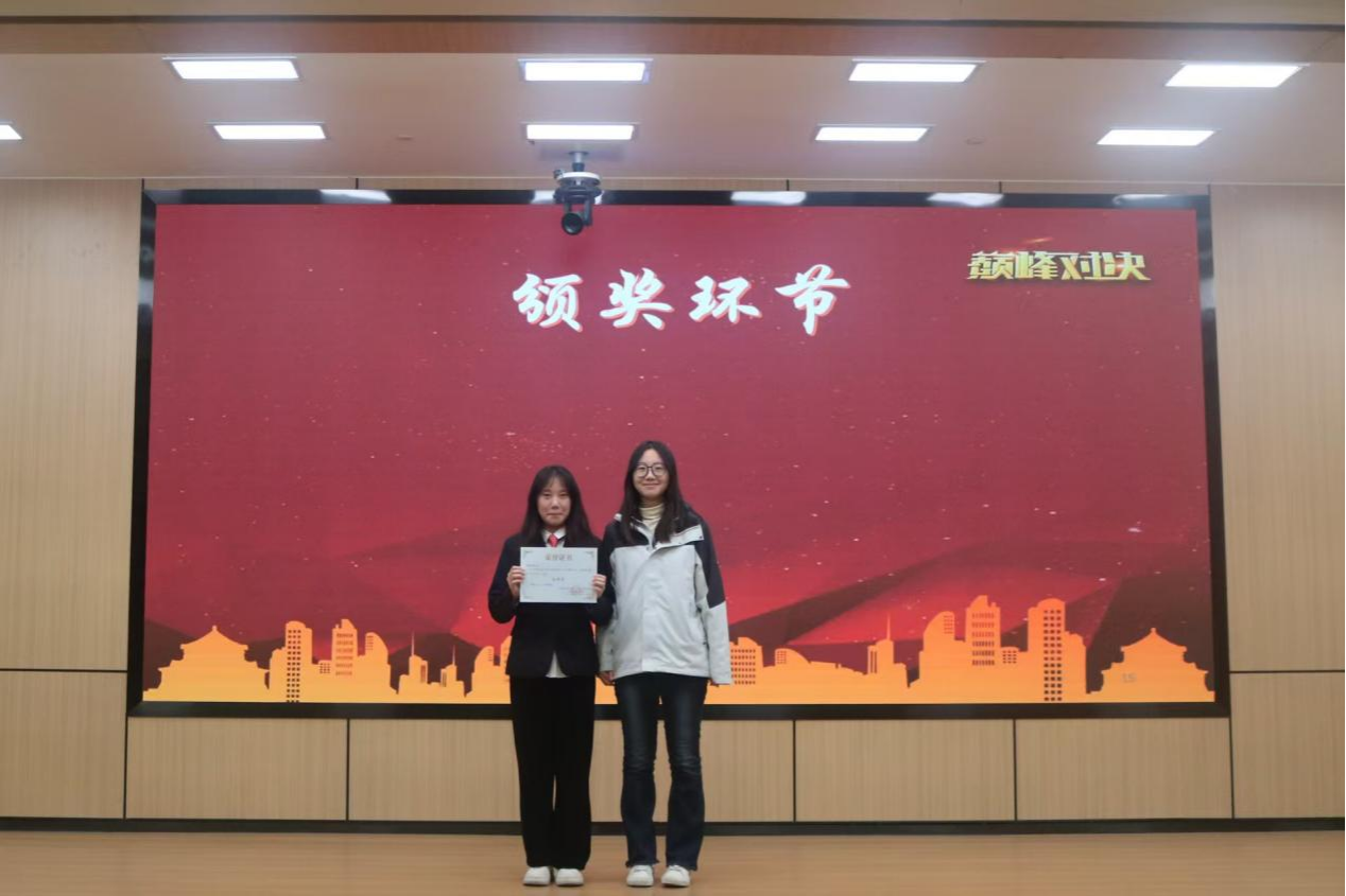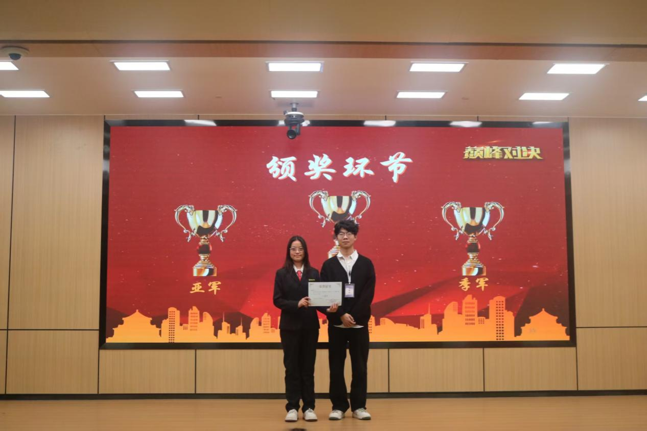 本次比赛进入尾声,获得优秀团体奖的是你说的不对队,获得冠军的是我和评委站一队、获得亚军的是啊对对队、获得季军的是偏要和你作队,获得最佳辩手奖的是马俊涛同学、何思佳同学。随后,评委为优秀团体和优秀辩手颁奖并合影留念。