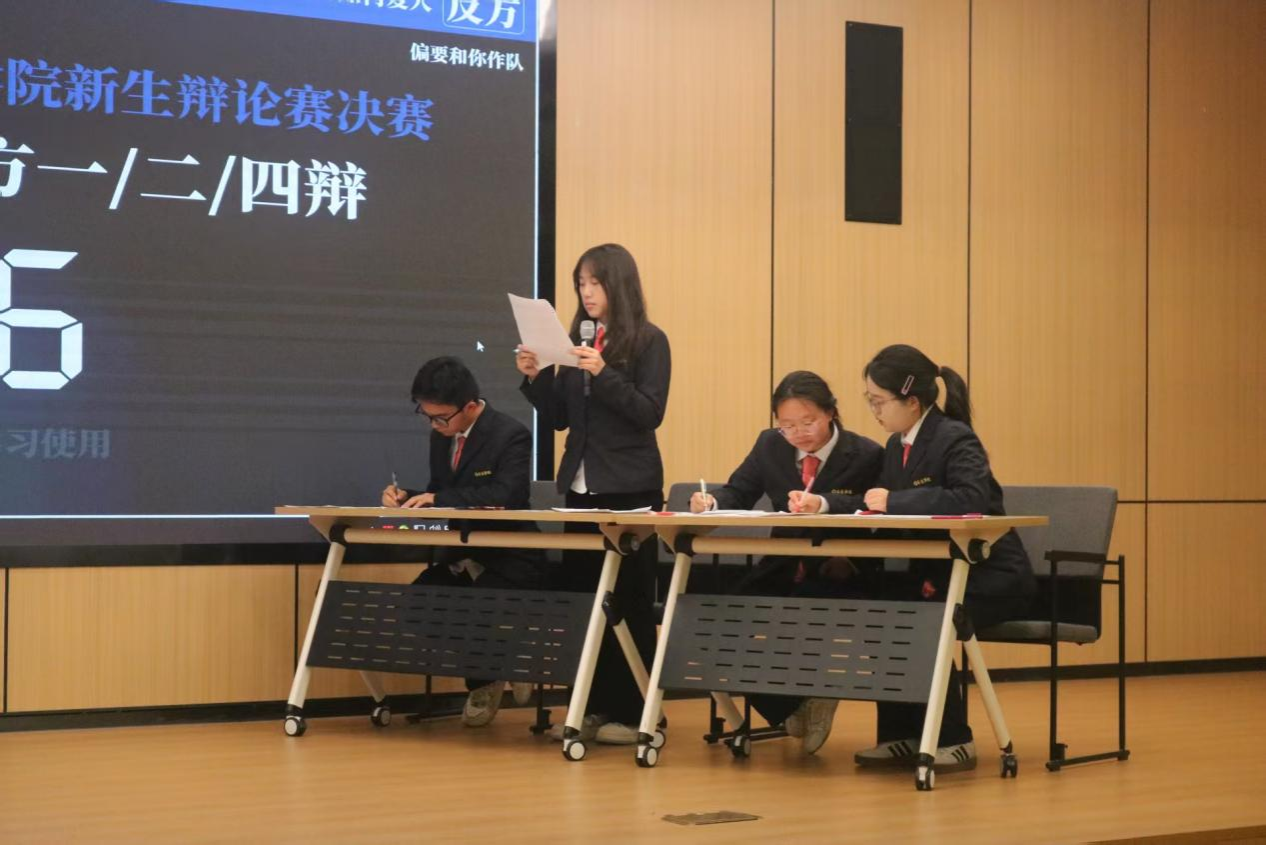 “言为心声,辩以明理。”为搭建学生思想交锋平台,锤炼逻辑思辨与语言表达能力,营造笃学善思的学习氛围,管理学院2025级新生杯辩论赛决赛于11月20日18:30在新图书馆二楼第一报告厅正式拉开帷幕。出席本次辩论赛的嘉宾有:2025级新生辅导员任素伟老师、第28届主席团成员、评委薛行健学姐、潘小静学姐、朱靓芸学姐以及本次参赛选手。