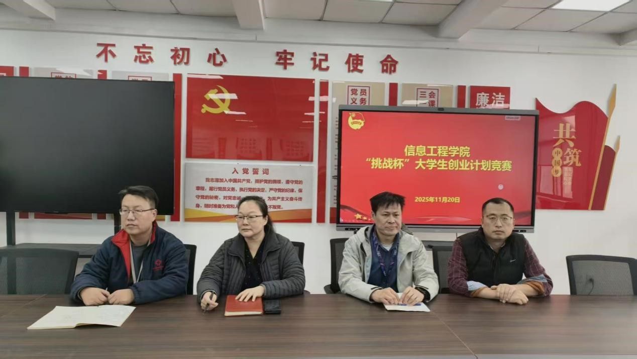 11月20日14:30至17:00,信息工程学院“挑战杯”大学生创业计划竞赛在商管楼218会议室顺利开展。本次比赛吸引37支团队同台竞技,信息工程学院院长周湘贞出席并致辞,计算机科学与技术教研室主任王天顺教授、物联网工程教研室主任乔木教授及团委副书记袁奉亚担任评委,师生代表共同见证了这场青春科创盛宴。