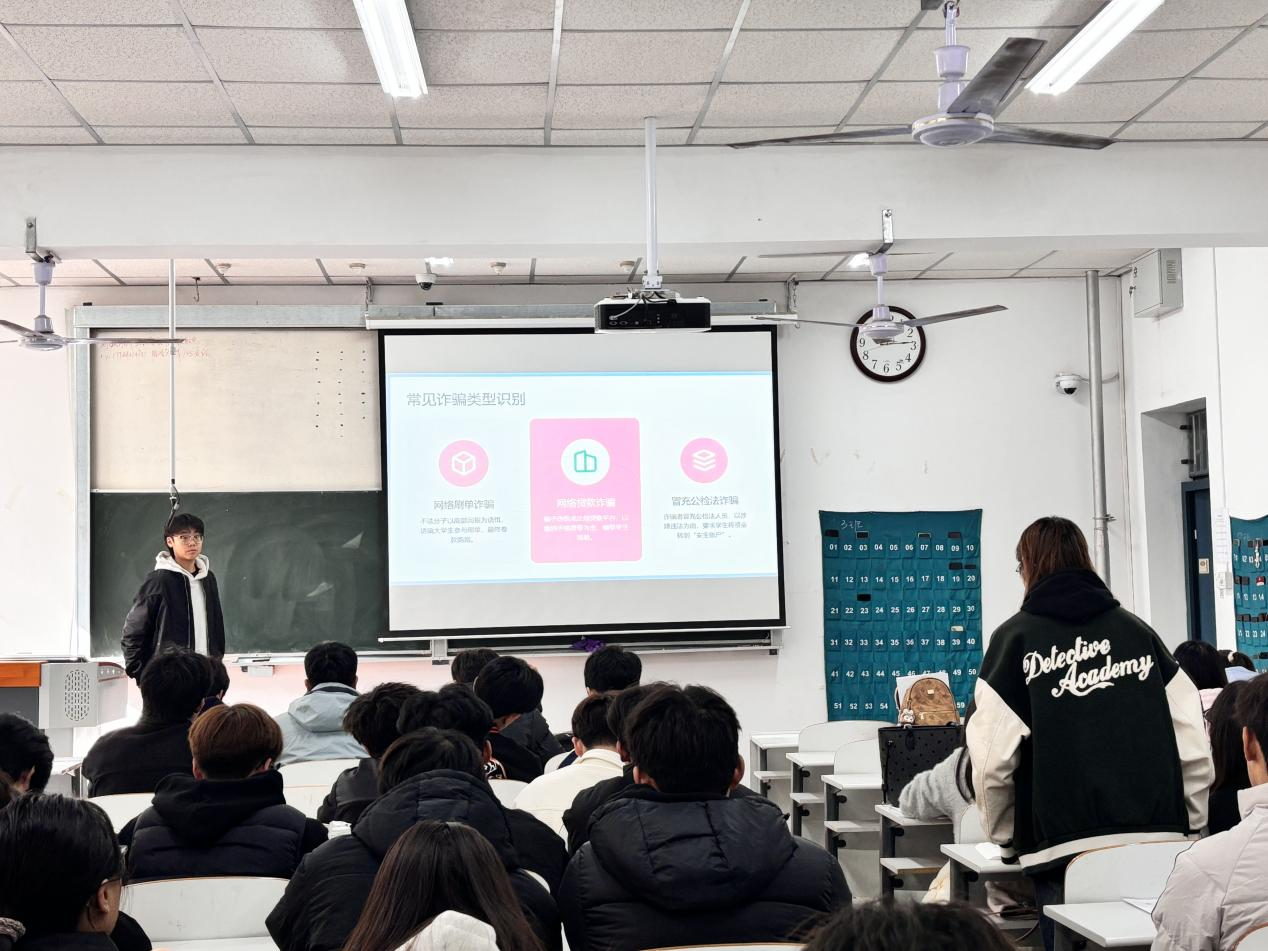 现场学生认真聆听、积极互动,不少同学在笔记上记录反诈要点。蔡新业同学表示:“之前只在新闻里看到过诈骗案例,这次活动让我清楚了具体的防范方法,以后会更谨慎保护个人信息。”杨丁瑜同学表示:“之前总觉得诈骗离自己很远,今天才发现很多套路就藏在日常社交和消费里。”此次活动让同学们对诈骗手段有了更清晰的认知,后续会提醒身边同学共同防范。