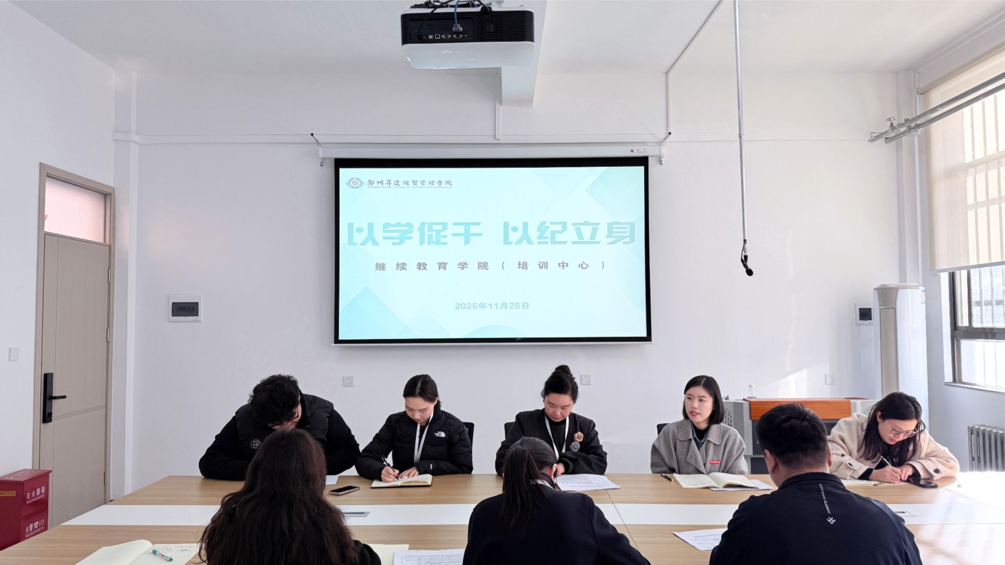 11月25日下午,继续教育学院在办公室召开"以学促干、以纪立身"专题工作会议。学院副院长吴娟娟教授、办公室主任林方及在岗教职工参加会议。