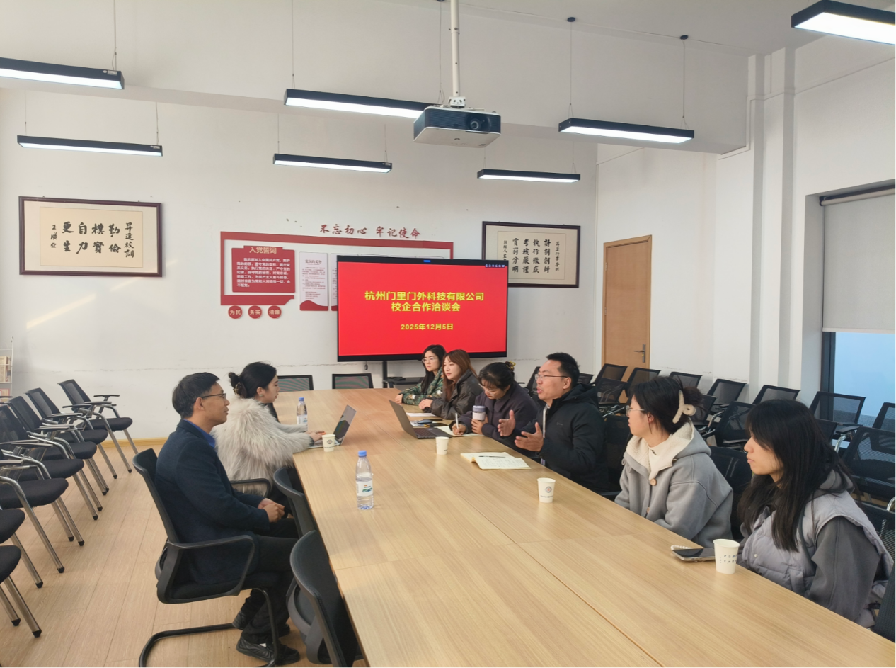 2025年12月5日,商学院与杭州门里门外科技有限公司校企合作洽谈会在教学楼2号楼315会议室成功举行。本次会议以“深化产教融合,共育直播英才”为主题,双方围绕电商领域,特别是直播人才培养的协同创新与实践路径进行了深入且富有成效的交流。杭州门里门外科技有限公司校企合作部负责人许振兴、直播带货主播主管蒋雪玲,商学院院长白朋飞、产学研专员刘玲芳、产业学院教师卢瑞娜及直播教学团队骨干教师魏民、南夏、郭红瑶共同出席了本次洽谈会。