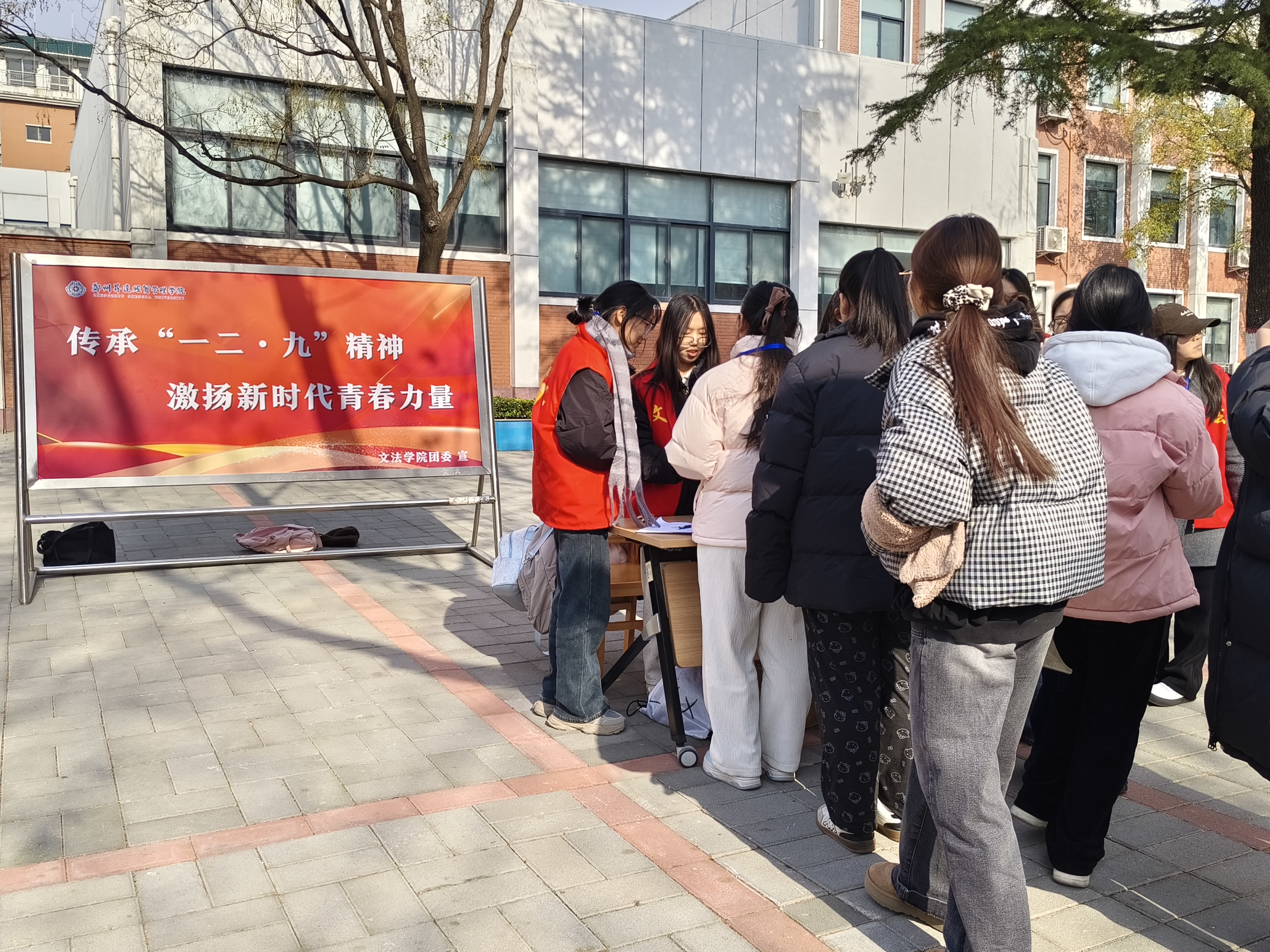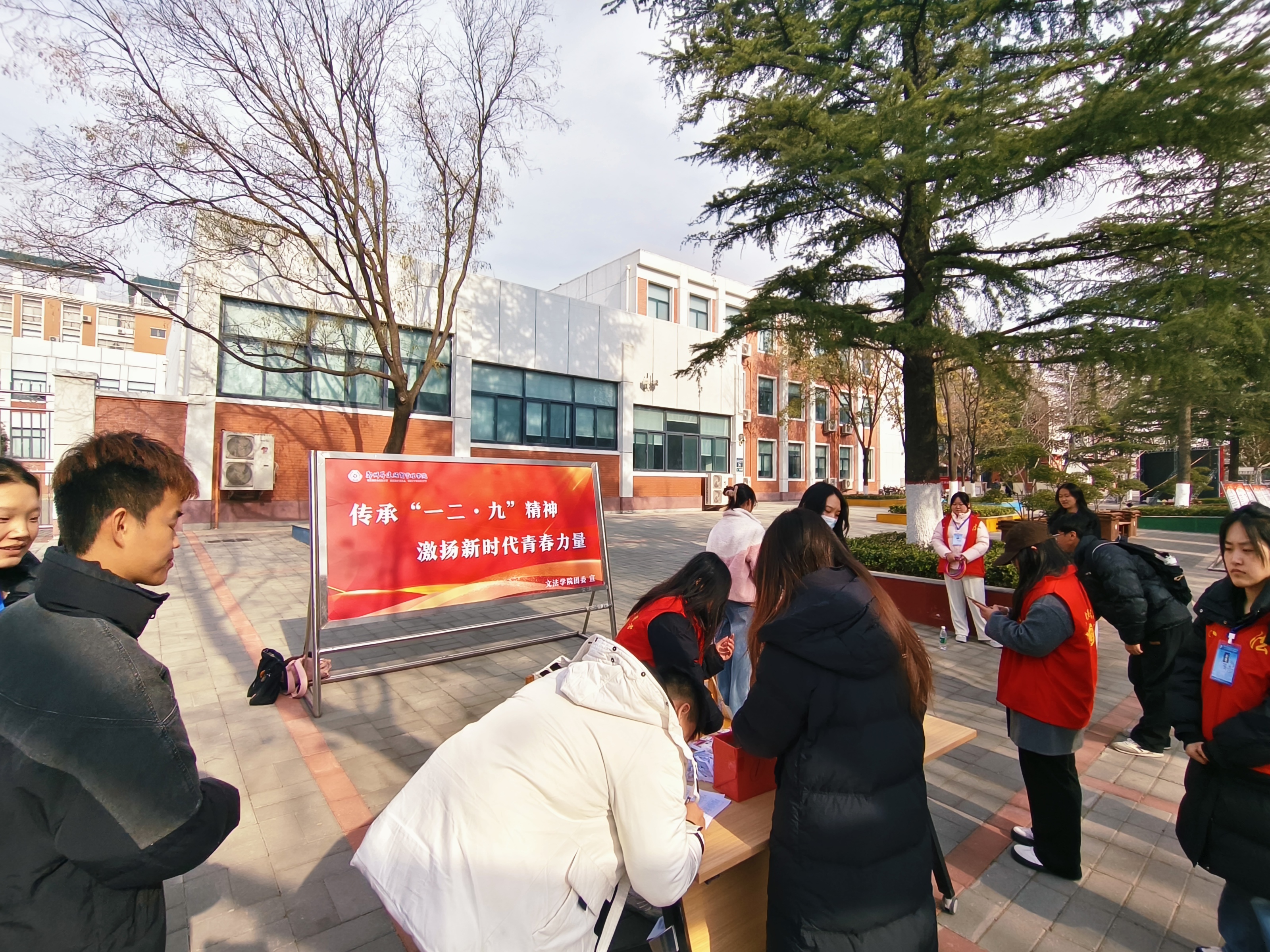 值一二·九运动90周年之际,为重温革命历程、感悟初心使命,由文法学院团委学生会主办、权益部与联络服务部联合承办的“薪火赓续一二·九 青年逐光奋前行”纪念一二·九运动知识竞答活动于12月8日在教学1号楼南侧广场举行。此次活动面向全校学生。