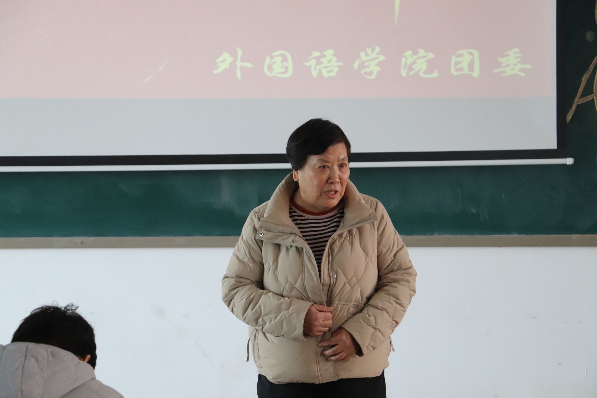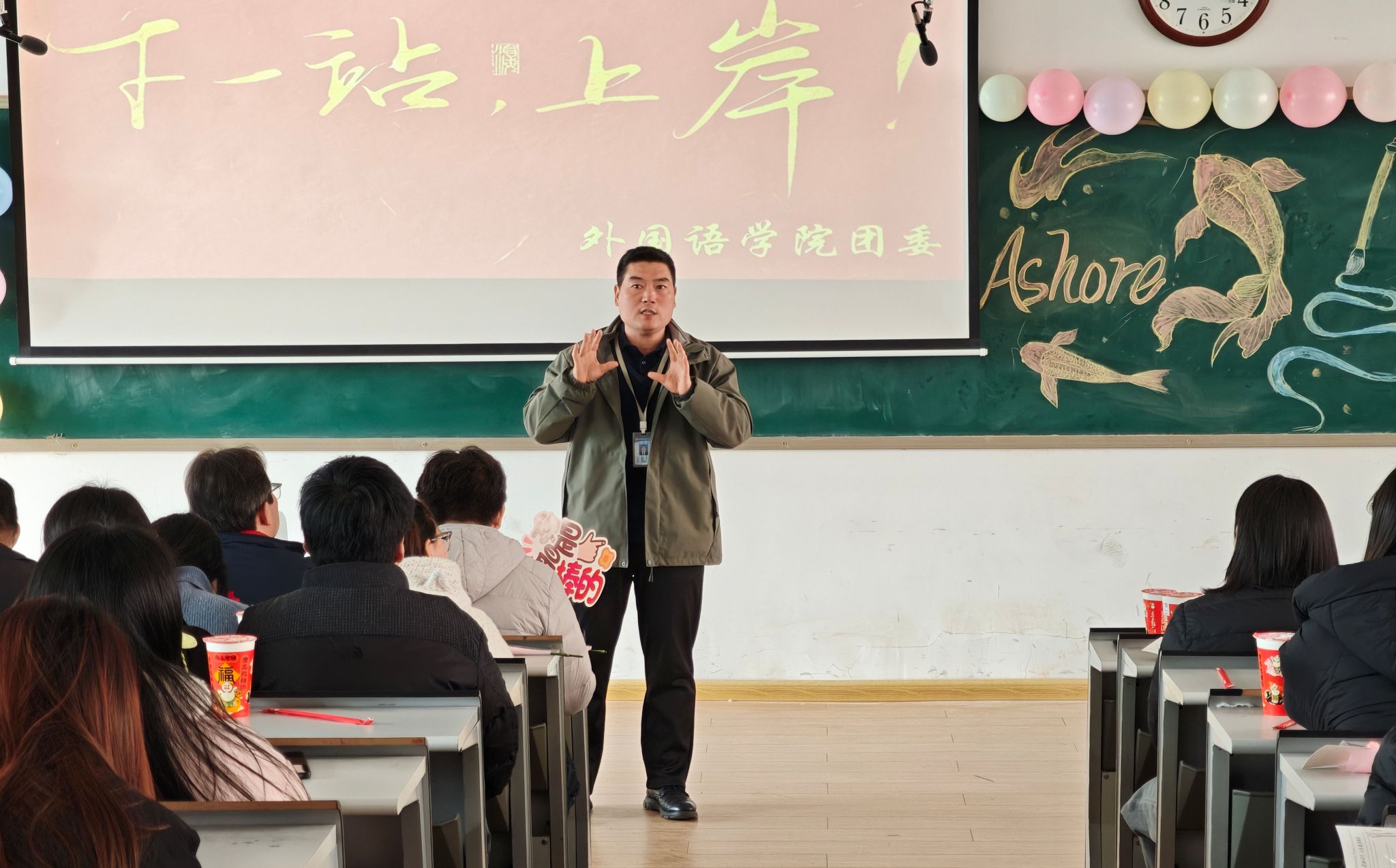 为助力即将踏上考场的学子有效缓解考前压力,坚定冲刺信心,由外国语学院团委学生会精心策划、文体部全力协办的“语”你同行,“研”途有光考研暖心助力会,于2025年12月8日上午在教一楼109教室温馨举办。出席本次活动的有外国语学院院长王莉莉教授、院党委书记石皓召同志、副院长贺光辉老师、院党委副书记兼团委书记丁玥老师、院团委副书记武珍毅老师、各教研室老师、毕业班辅导员老师们及外院全体考研学子。