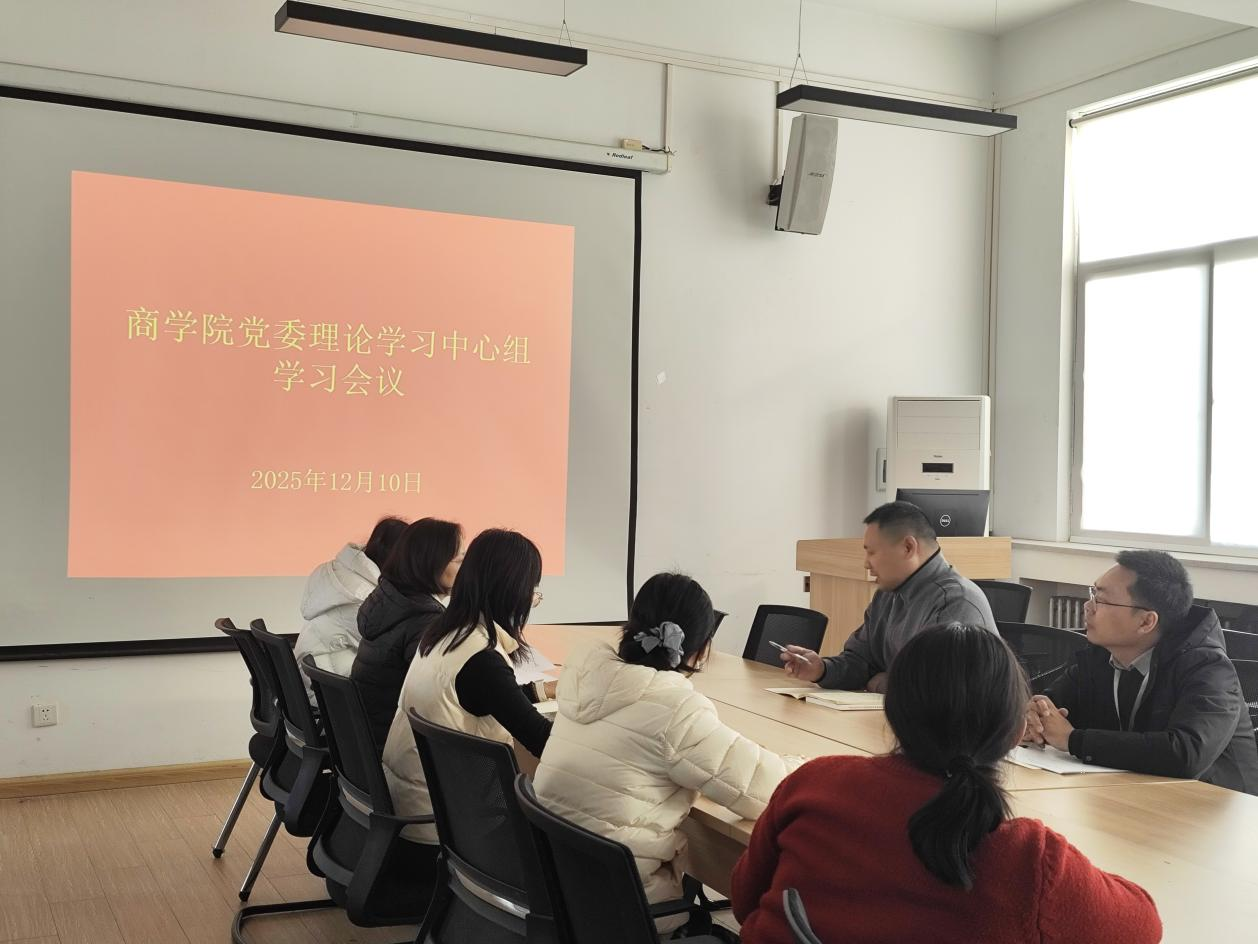 12月10日下午,商学院党委理论学习中心组开展集中学习,传达学习习近平总书记在主持二十届中共中央政治局第二十二次集体学习时的重要讲话精神。学院全体党委委员参会,会议由学院党委书记郭峰主持。