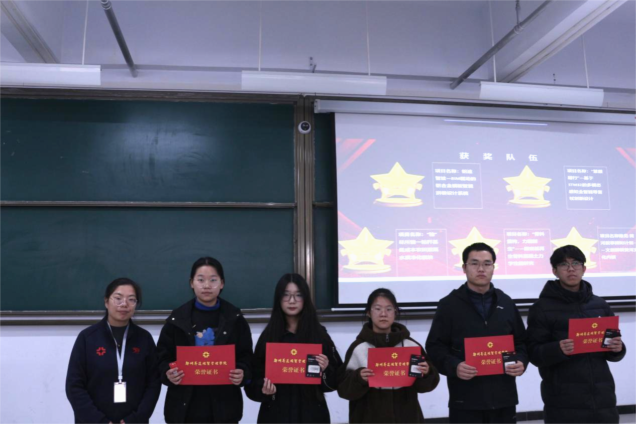 12月10日,建工学院2026年“挑战杯”大学生创业计划竞赛获奖项目颁奖典礼在万林大楼610教室隆重举行。院党委副书记兼团委书记支园园、院团委副书记王洋洋出席活动,与获奖学子共同见证荣耀时刻。