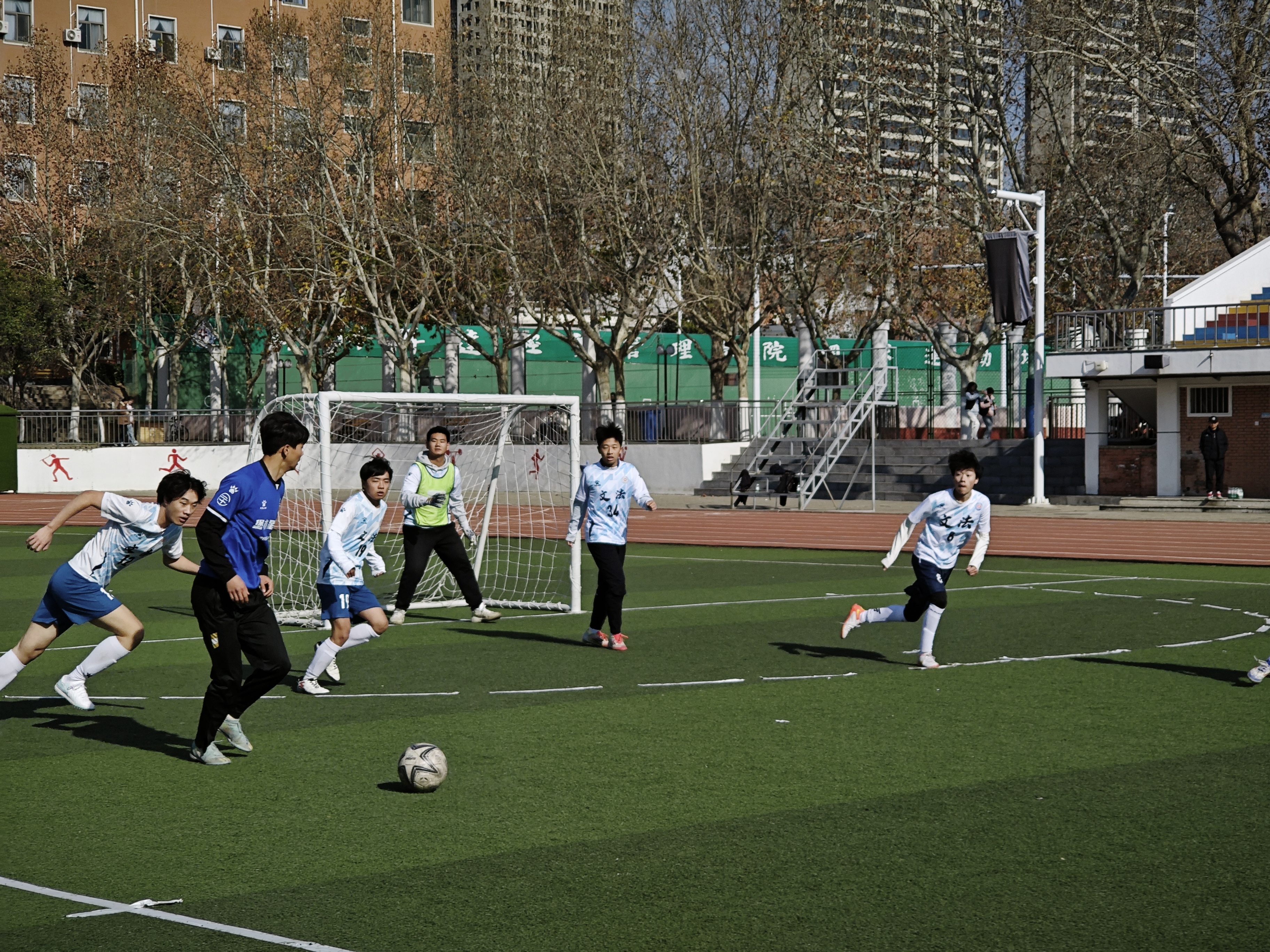 为丰富校园文体生活,凝聚团队奋进力量,展现文法学子昂扬向上的精神风貌,经过前期激烈的班赛,12月9日文法学院新生足球赛在体育场隆重举行。文法学院部分同学热情到场观赛。