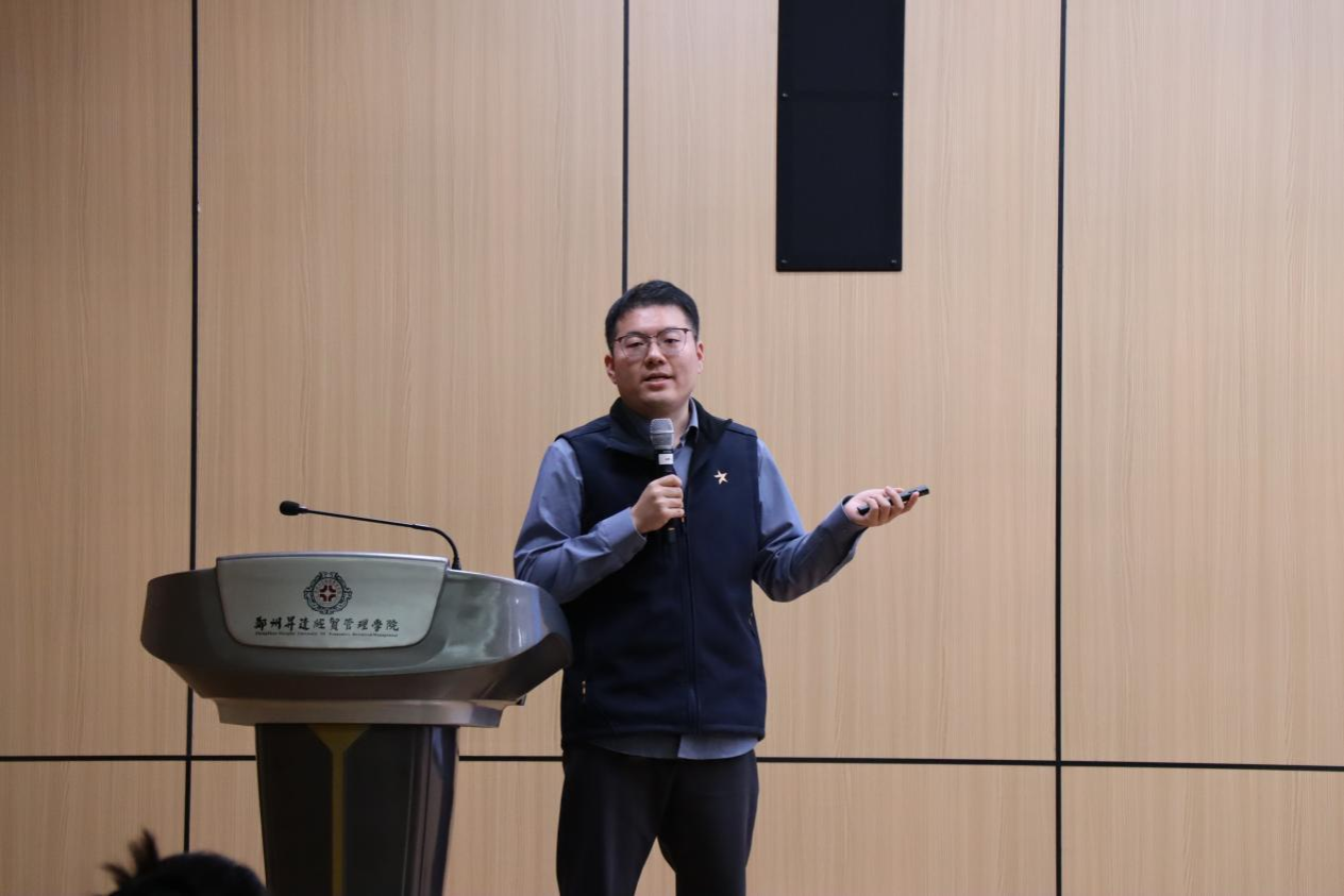 12月10日下午,文法学院在新图书馆第一报告厅举办新闻学和网络与新媒体专业认知讲座,河南日报社财经全媒体中心主编贾永标担任主讲嘉宾。讲座主题为“预制菜时代,新闻业何去何从?”讲座由文法学院教研室专任教师丁新湍主持,温锡华、赵冰洁老师及2025级新闻学、网络与新媒体专业全体学生参加。