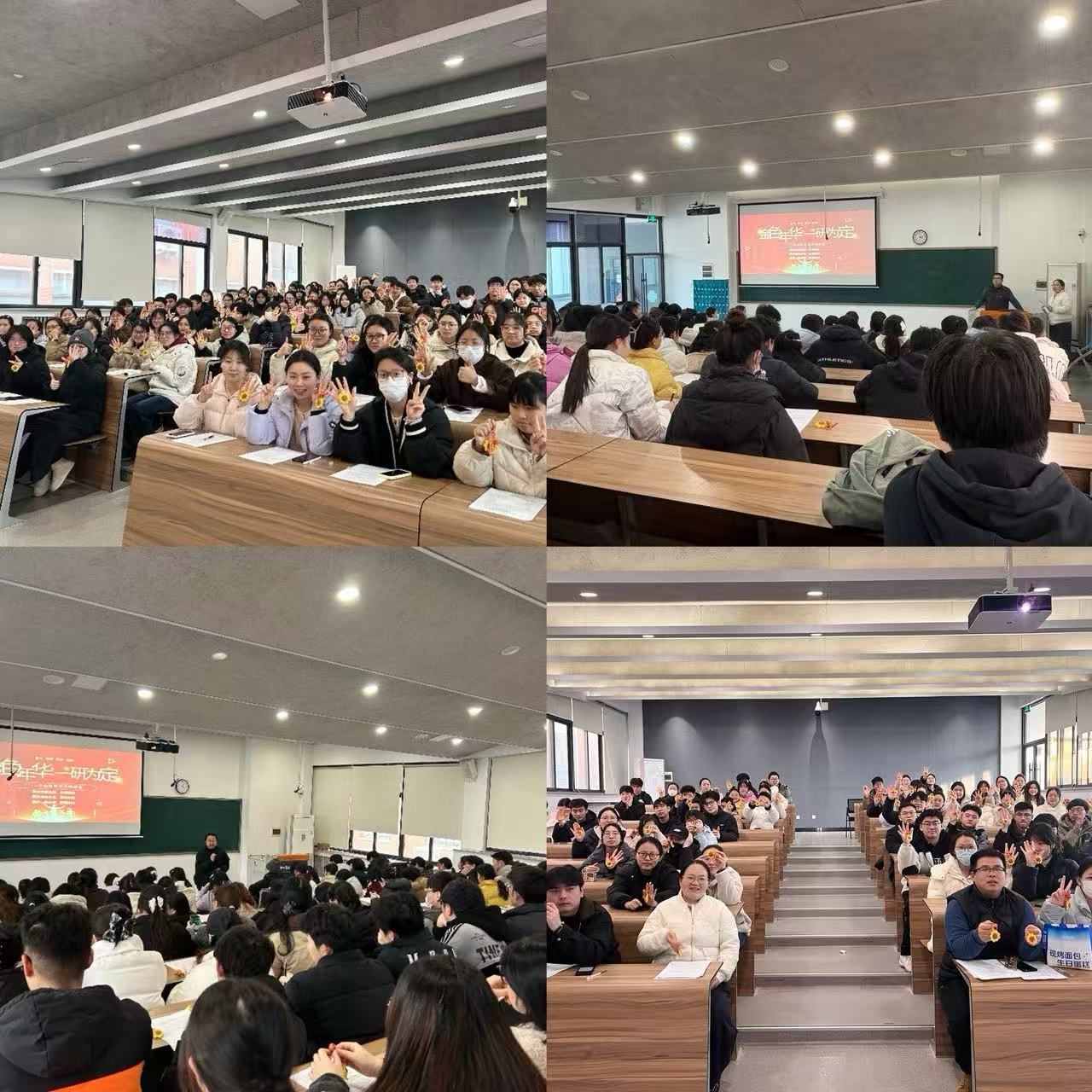 为护航2025年考研学子的逐梦之路,金融贸易学院于近日分两批开展以“金色年华,一‘研’为定”为主题的研究生考试考前暖心会,学院辅导员与全体考研学子齐聚一堂,共赴这场冬日里的温暖之约。
