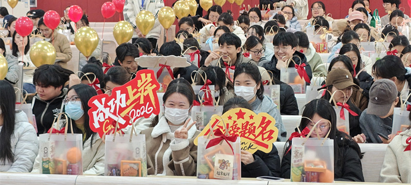 考研冲刺的号角嘹亮吹响,逐梦前行的脚步愈发坚定。为帮助2026届考研学子提振信心、舒缓压力,以最佳状态迎战备考攻坚期,12月8日,会计学院精心举办“研”途星光 “成”意相伴考研助力活动。院长王宝庆、院党委书记张蕾、副院长张新成、副院长毕鹏翾、党委副书记兼团委书记陈刚、教学秘书李永利、学院组织员曹会美及毕业年级辅导员齐聚现场,为即将奔赴考场的学子们送来暖心关怀与殷切嘱托。活动由党委副书记陈刚主持,现场暖意融融,氛围热烈而温情。