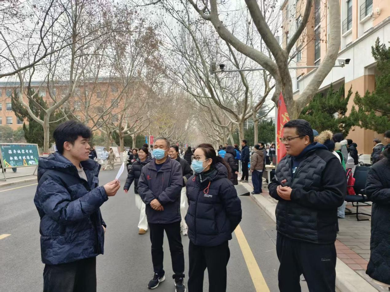 管理学院院长朱影影、党委书记职正路以及党委副书记许广庆亲自到考研服务站看望在场志愿者,并与前来休息的考生们亲切交流。他们详细询问同学们的备考情况和实际需求,对大家刻苦求学的精神表示赞许,并送上诚挚的鼓励与祝福。辅导员给予考研学子关怀,希望这份关怀能帮助大家缓解压力、轻装上阵,以最佳状态考出理想成绩。