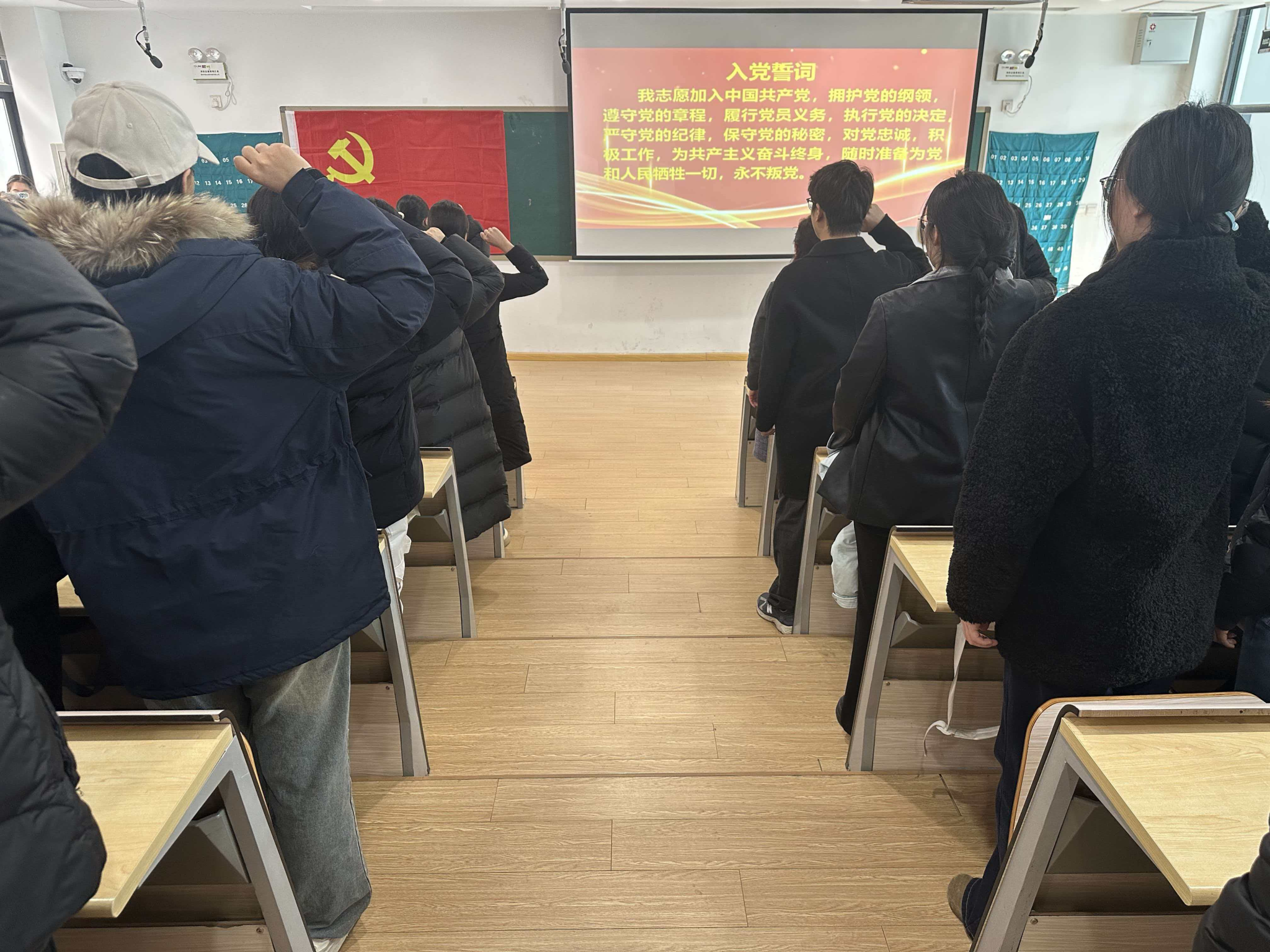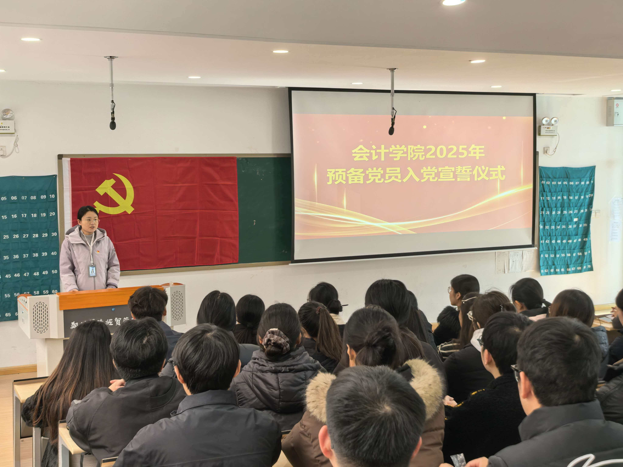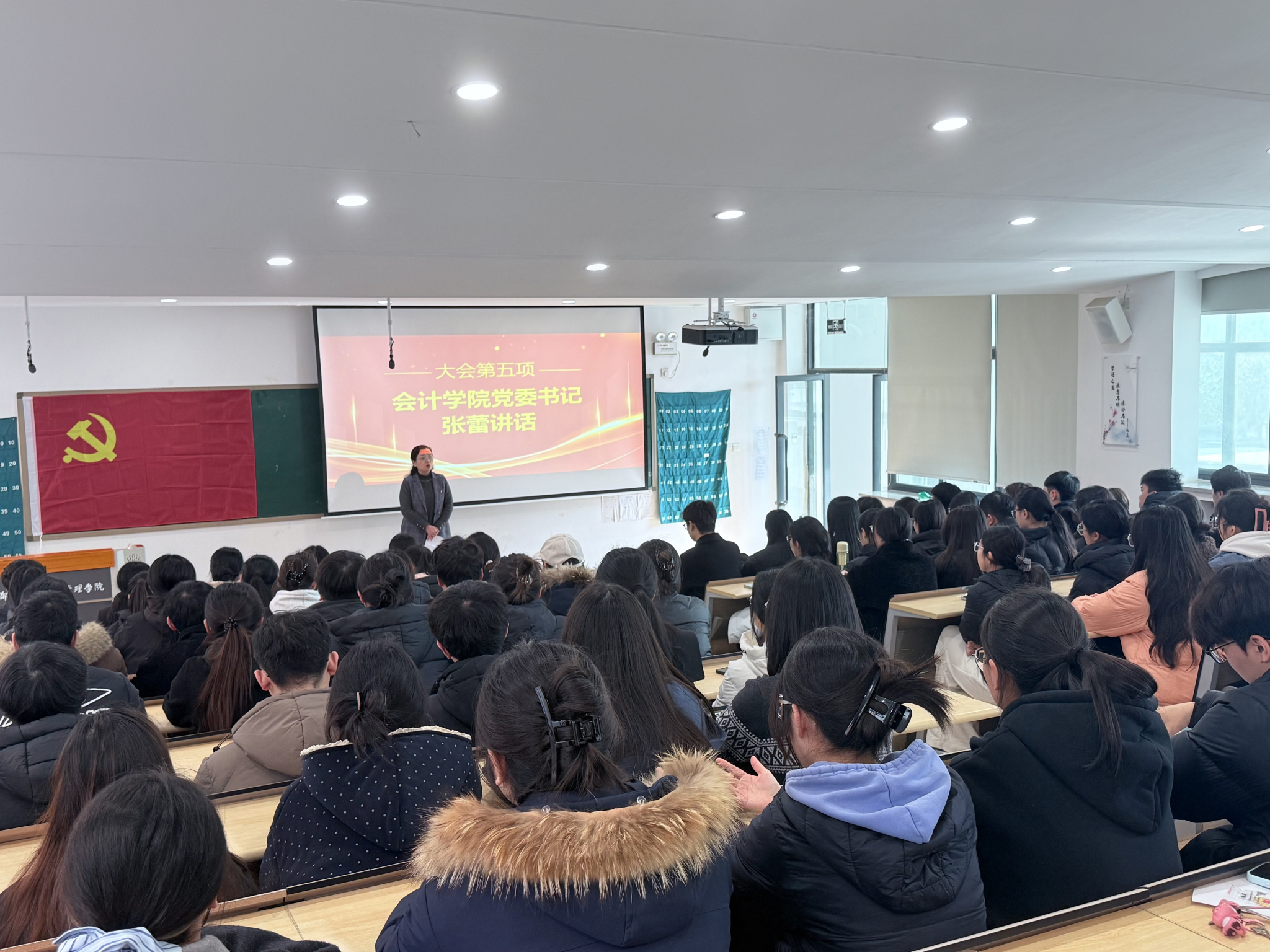 为教育引导新发展党员牢记初心使命、强化党员意识、坚定理想信念,会计学院党委于2025年12月24日在教学4号楼108教室举行会计学院2025年新党员入党宣誓仪式。学院党委书记张蕾、财务管理专业学生第一党支部书记黄露出席会议。宣誓仪式由学院党委组织员曹会美同志主持。