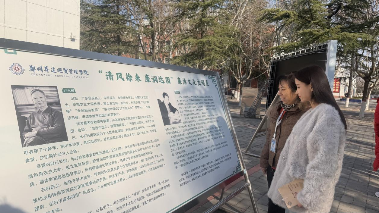 12月25日,体育学院组织全体教职工前往教学二号楼东南角参观"清风徐来 廉润达园"廉洁文化主题展。