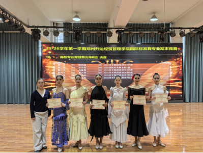 12月25日,体育学院在体育馆体育舞蹈1厅举行了2025-2026学年第一学期国际标准舞专业期末竞赛。
