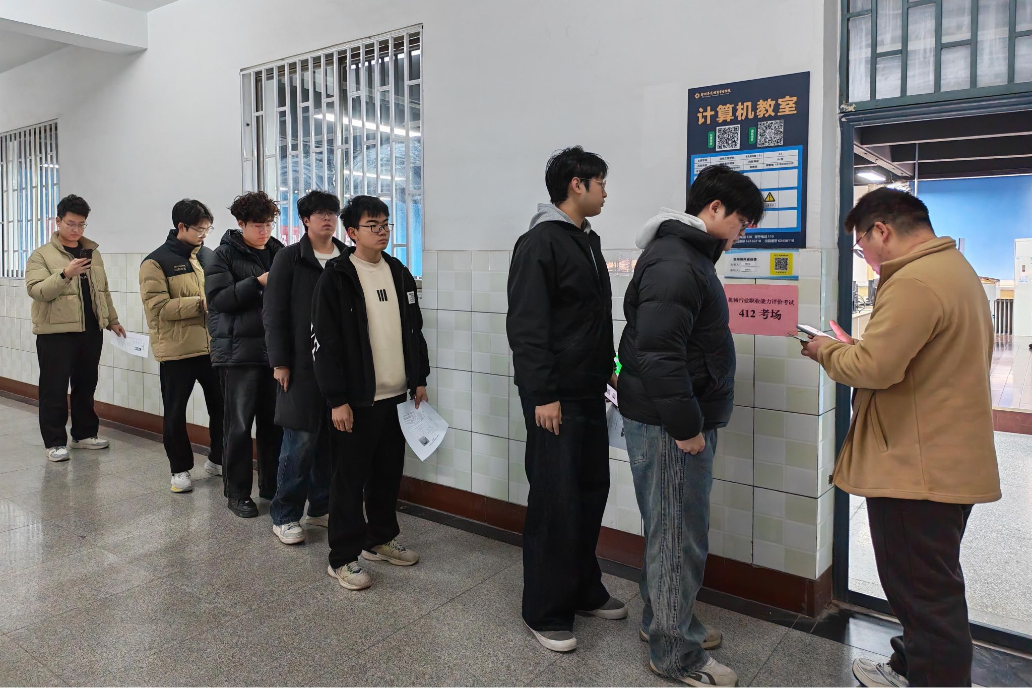 考试期间,考务组织严谨周密。考生在工作人员引导下有序完成核验、签到等环节。各部门人员通力协作,保障了考场秩序与考试流程的顺畅运行。整体考试过程平稳规范,各环节衔接高效。