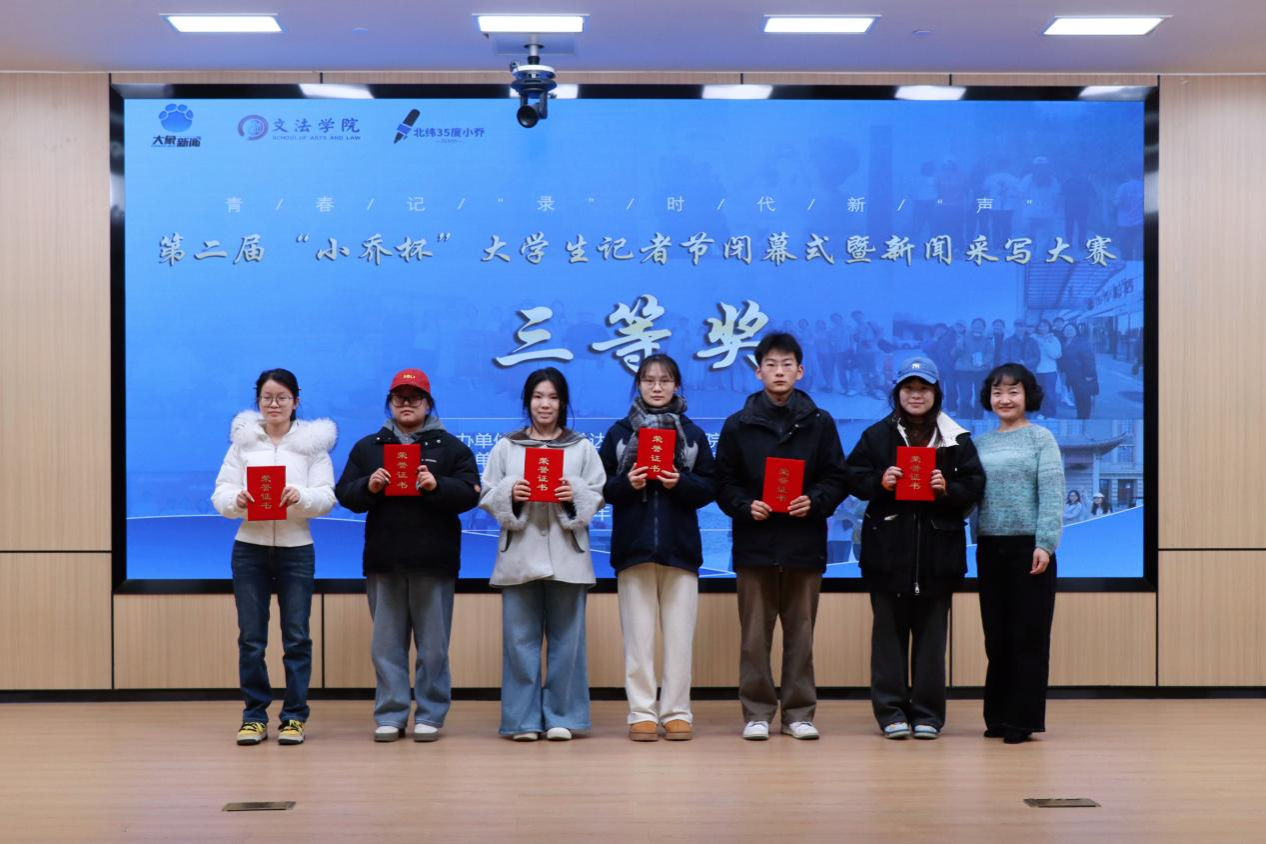 12月30日,第二届“小乔杯”大学生记者节闭幕式暨新闻采写大赛颁奖典礼在郑州升达经贸管理学院新图书馆二楼1号报告厅举行。文法学院副院长赵严俊、党委副书记郑玲玲、新闻学教研室主任赵静及校内外获奖师生代表出席活动。