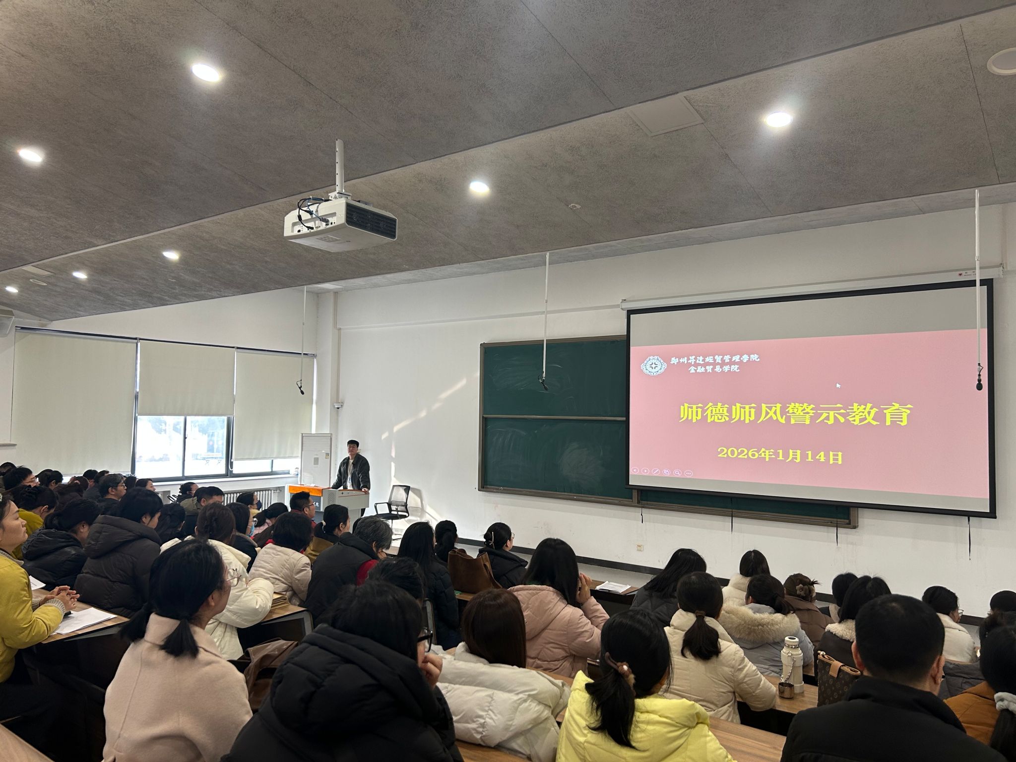 为深入强化教职工廉洁从教意识,1 月 14 日,金融贸易学院组织全体教职工召开师德师风警示教育大会,将理论学习与纪律教育深度融合,为学院高质量发展筑牢思想根基。