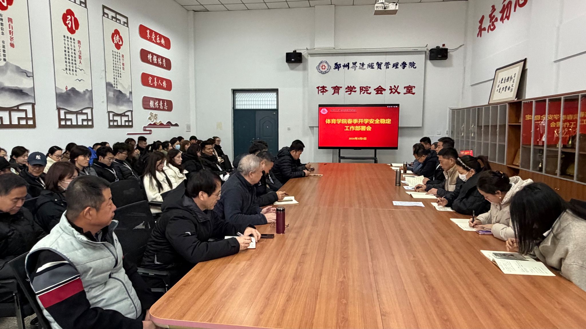为深入贯彻落实学校关于校园安全稳定工作的各项部署,压紧压实安全工作责任,筑牢新学期学生安全防护屏障,保障学院各项工作平稳有序开局,3月5日,体育学院召开2026年春季学期学生安全稳定工作部署会,学院全体教职工参会,会议由学院党委书记韩炎涛主持。