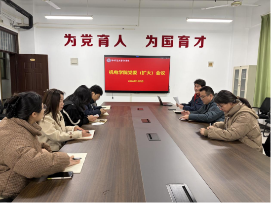 3月5日上午,机电学院在万林大楼524会议室召开党委(扩大)会议,专题部署树立和践行正确政绩观学习教育工作。学院党委委员、党支部书记参加会议,会议由院党委书记丁向育主持。