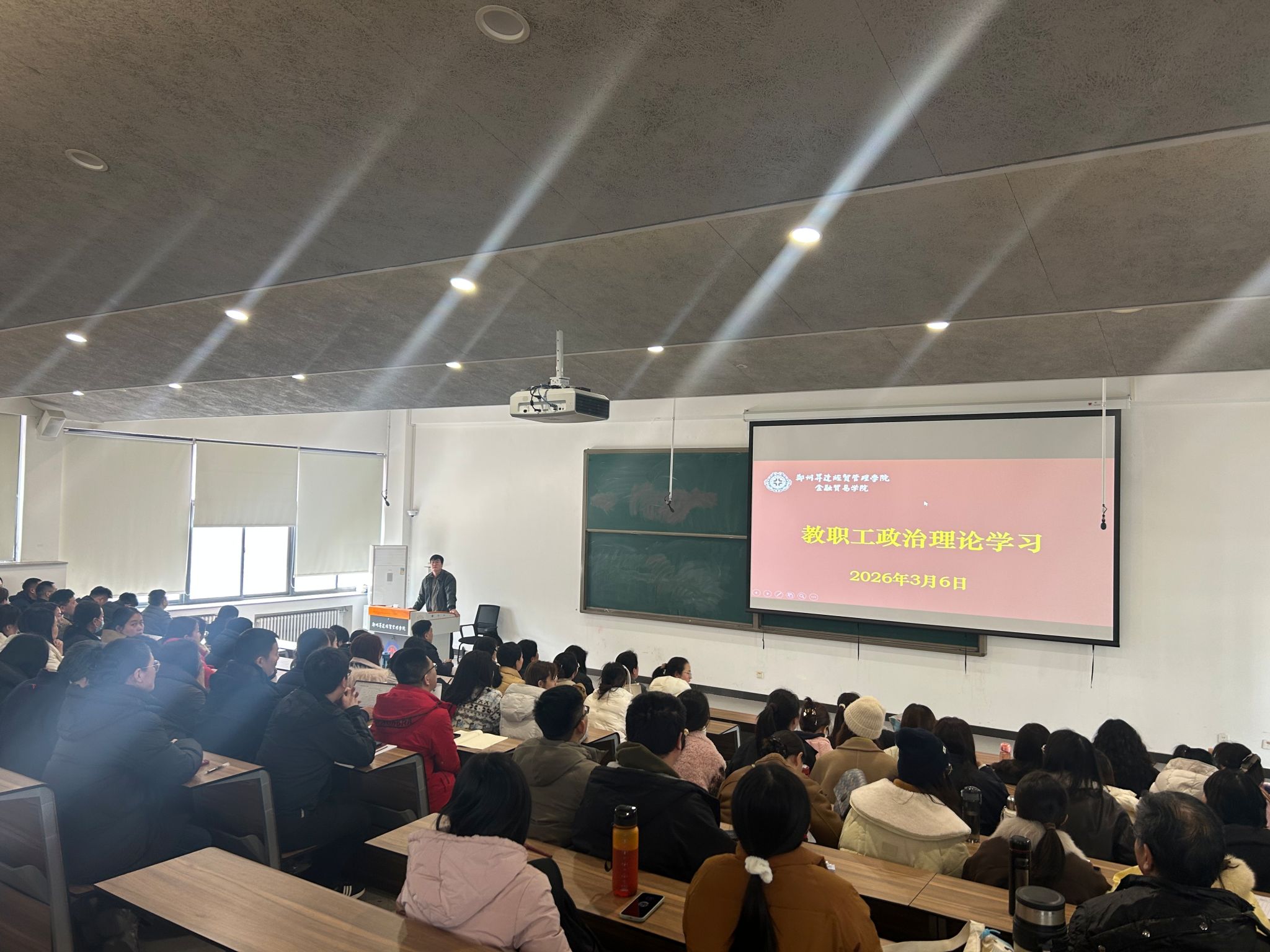3月6日,金融贸易学院在107教室组织开展教职工政治理论学习会议,专题学习中共中央政治局会议精神,学院全体教职工参加学习。