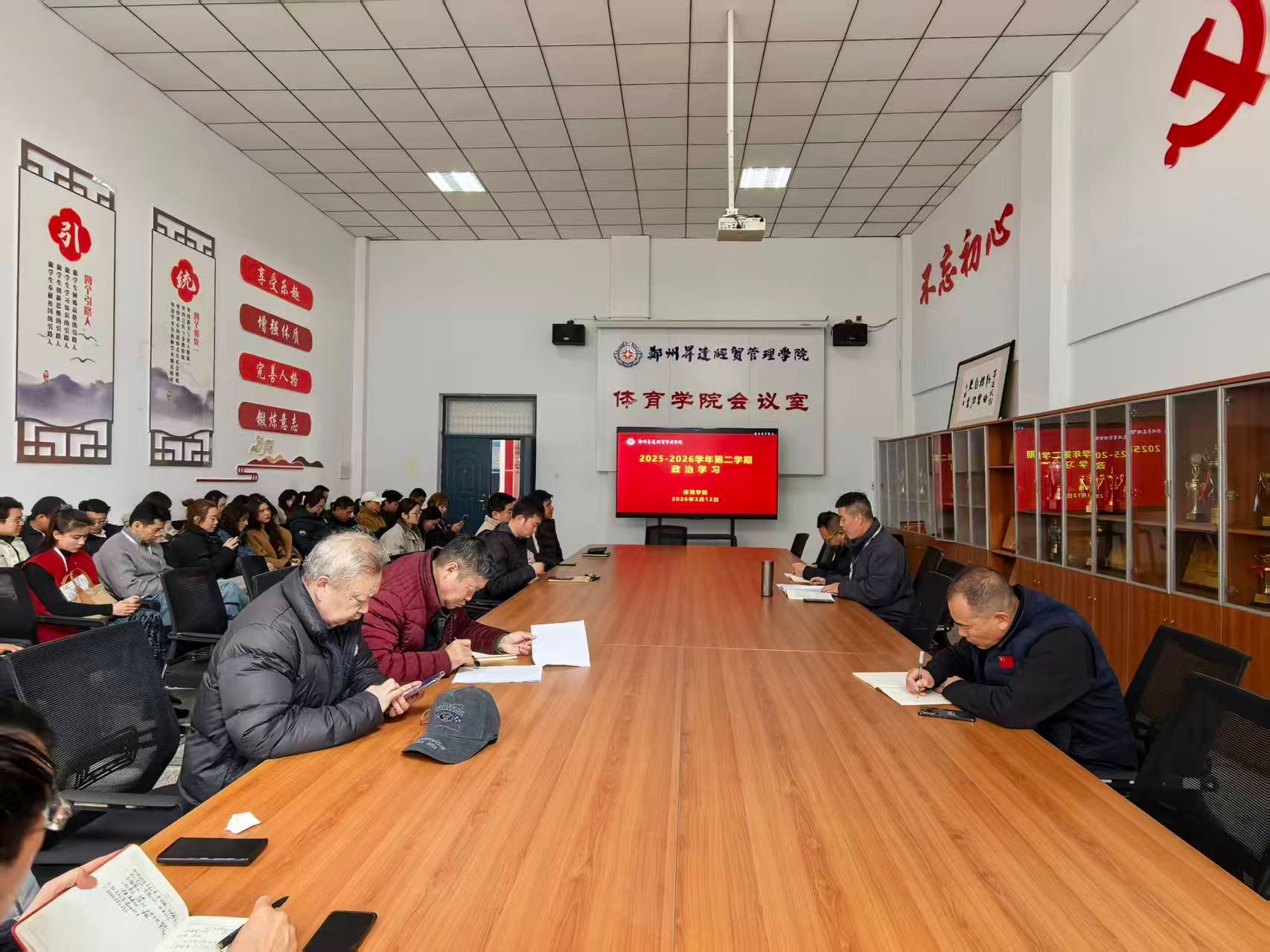 3月12日下午,体育学院在学院会议室开展全体教职工政治理论学习,学院全体教职工参加。会议由党委书记韩炎涛主持。